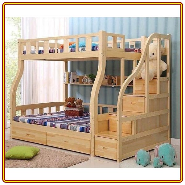 Giường tầng xuất khẩu York có kích thước lọt lòng giường trên/dưới là 120x193 cm / 160x193 cm, phủ bì 206x168x178 cm. Khoảng cách giữa 2 tầng là 98 cm, cầu thang bố trí bên