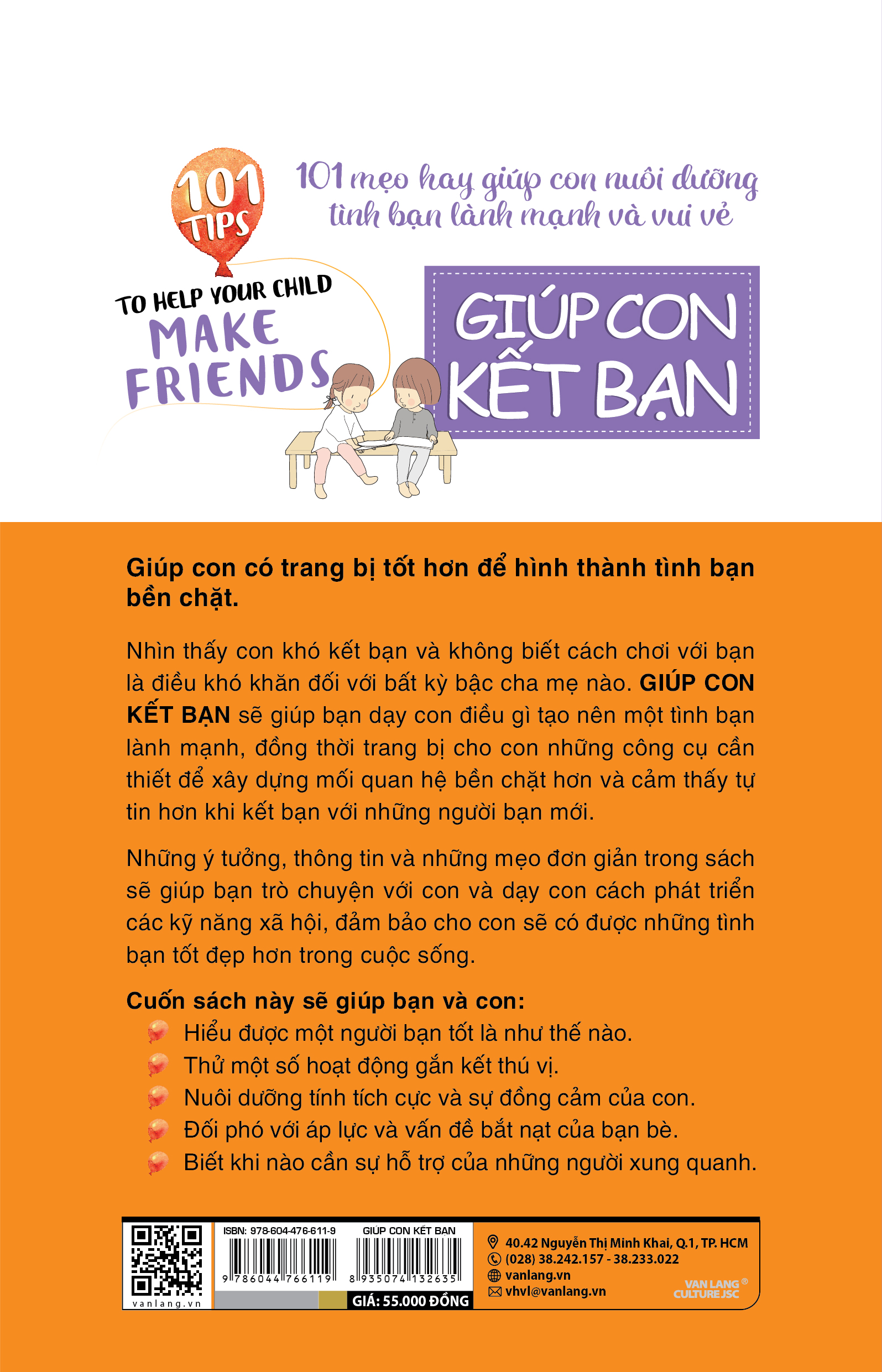 GIÚP CON KẾT BẠN sẽ giúp bạn dạy con điều gì tạo nên một tình bạn lành mạnh, đồng thời trang bị cho con những công cụ cần thiết để xây dựng mối quan hệ bền chặt hơn và cảm thấy tự tin hơn khi kết bạn với những người bạn mới.