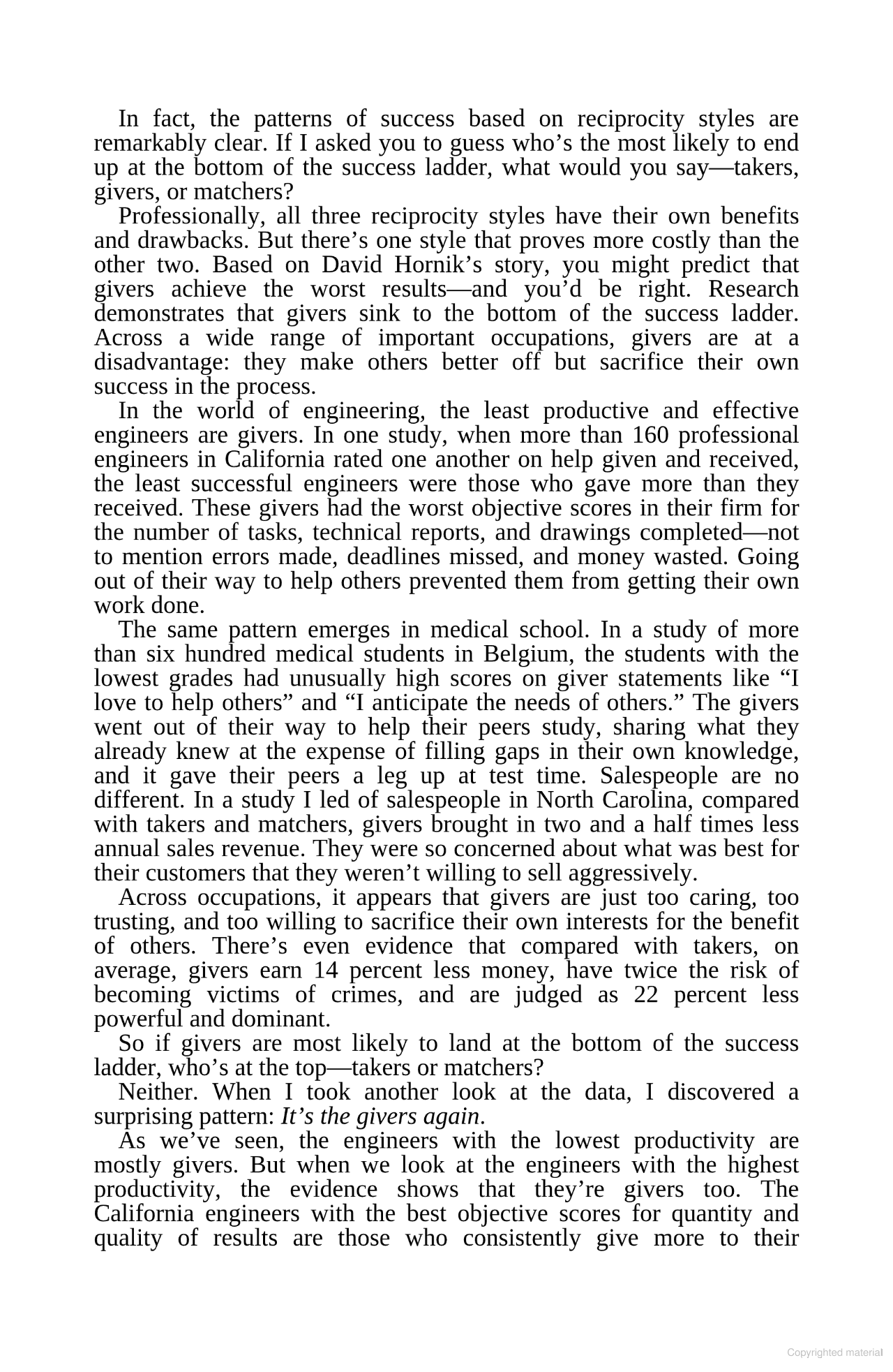 The motivations behind today's most successful leaders and entrepreneurs come to a simple yet decisive explanation: there are people who give, people who take, people who match, and people who fake. Our world is filled with these givers, takers, matchers and fakers. Amazingly, those who succeed (not only personally but for their clients and companies) don't take or match. They give. (Although they're not necessarily philanthropic.)