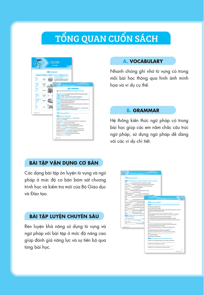 Nội dung bám sát khung chương trình giáo dục phổ thông mới Lớp 7 của Bộ Giáo dục và Đào tạo giúp các em nắm vững kiến thức đã học trên lớp cũng như ôn luyện thêm các bài tập nâng cao, hỗ trợ quá trình tự học tiếng Anh hiệu quả.