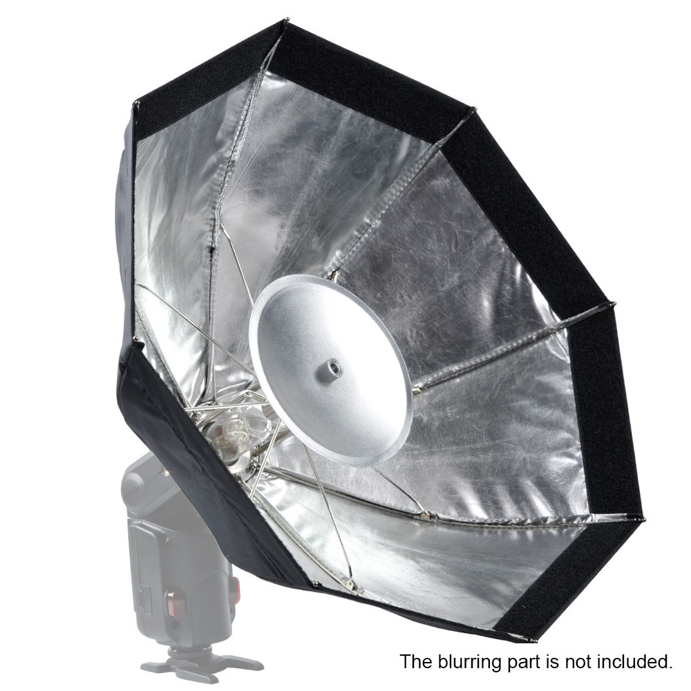 This softbox is 80cm / 31.5in in diameter. Features: 80cm / 31.5in in diameter, inside with reflect silver. Ultimate soften light stream and remove shadow to make perfect shooting. High quality flash cloth, minimize light