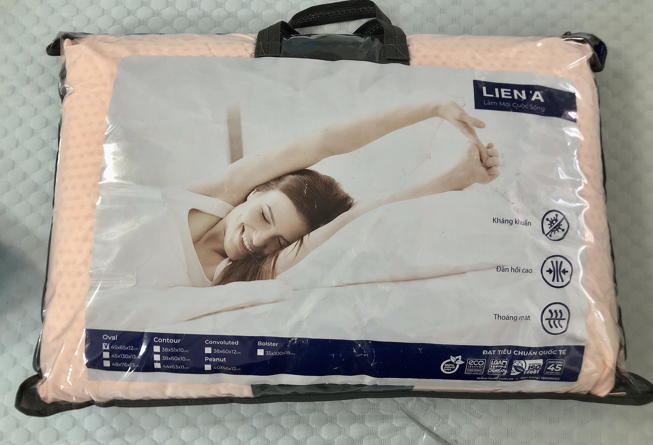 Gối cao su Liên Á Oval - 100% cao su thiên nhiên Đây là một trong những mẫu gối được yêu thích của Liên Á, có kiểu dáng truyền thống và thông dụng nhất