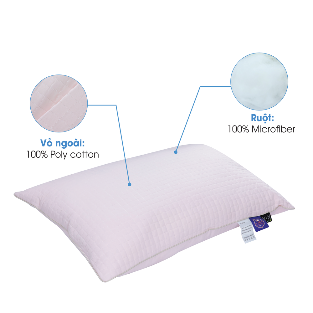 Ruột: 100% Microfiber với gòn 600 gram, tạo cảm giác mềm mại như tựa đầu trên đám mây.