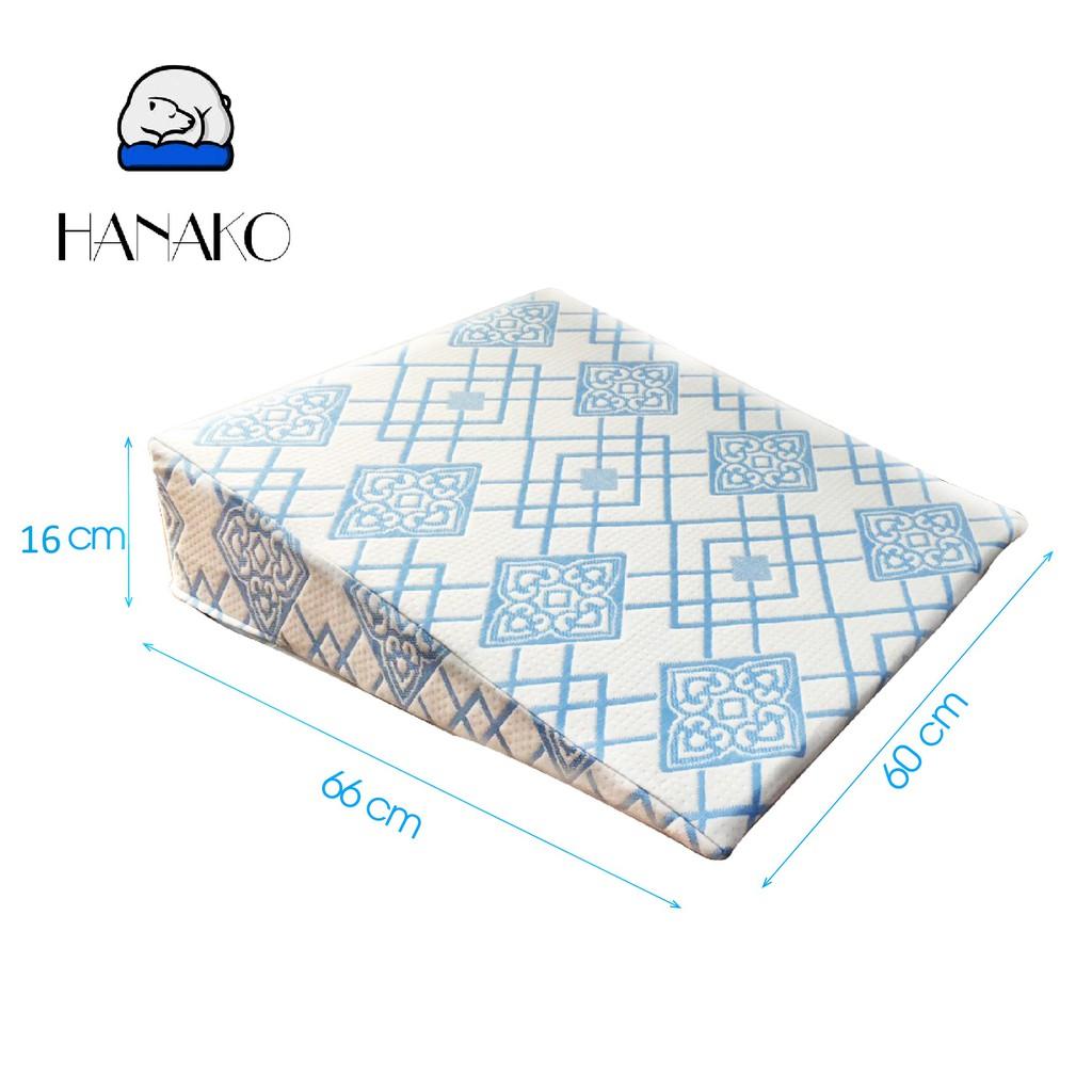 - Chống sưng phù tích nước mặt KÍCH THƯỚC: 666018cm: Dành cho người bị trào ngược nặng hoặc người có thói quen gối cao đầu 66x60x16cm: Dành cho mọi đối tượng trào ngược từ nhẹ đến trung bình. CHẤT LIỆU: Ruột gối làm bằng chất liệu Polyurethane Foam (PU foam) cao cấp nguyên khối, thành phần chính Polyol và Isocyanate, có mật độ phân tử cao, nâng đỡ cột sống, không gây lún, nóng dính như cao su non Memory foam trong mùa hè nóng nực nhất là thời tiết ở khu vực Miền Nam. Đặc tính mật độ phân tử cao giúp gối không quá mềm, có mùi hôi nếu nằm lâu như cao su non. Vỏ gối gấm thun nhập khẩu nhật bản, 2 mặt siêu co giãn, thấm hút, chống trượt Gấm thun hoa ghi: sang trọng, tinh tế Gấm thun vàng nổi: nền nã THƯƠNG HIỆU: Thương hiệu gối HANAKO gối có bảo hộ thương hiệu chống hàng nhái hàng giả của CỤC SỞ HỮU TRÍ TUỆ, độc quyền về hình dáng BẢO HÀNH 12 tháng chống lún xẹp. Hỗ trợ đổi size gối phù hợp ------------------------------------------------------------------------