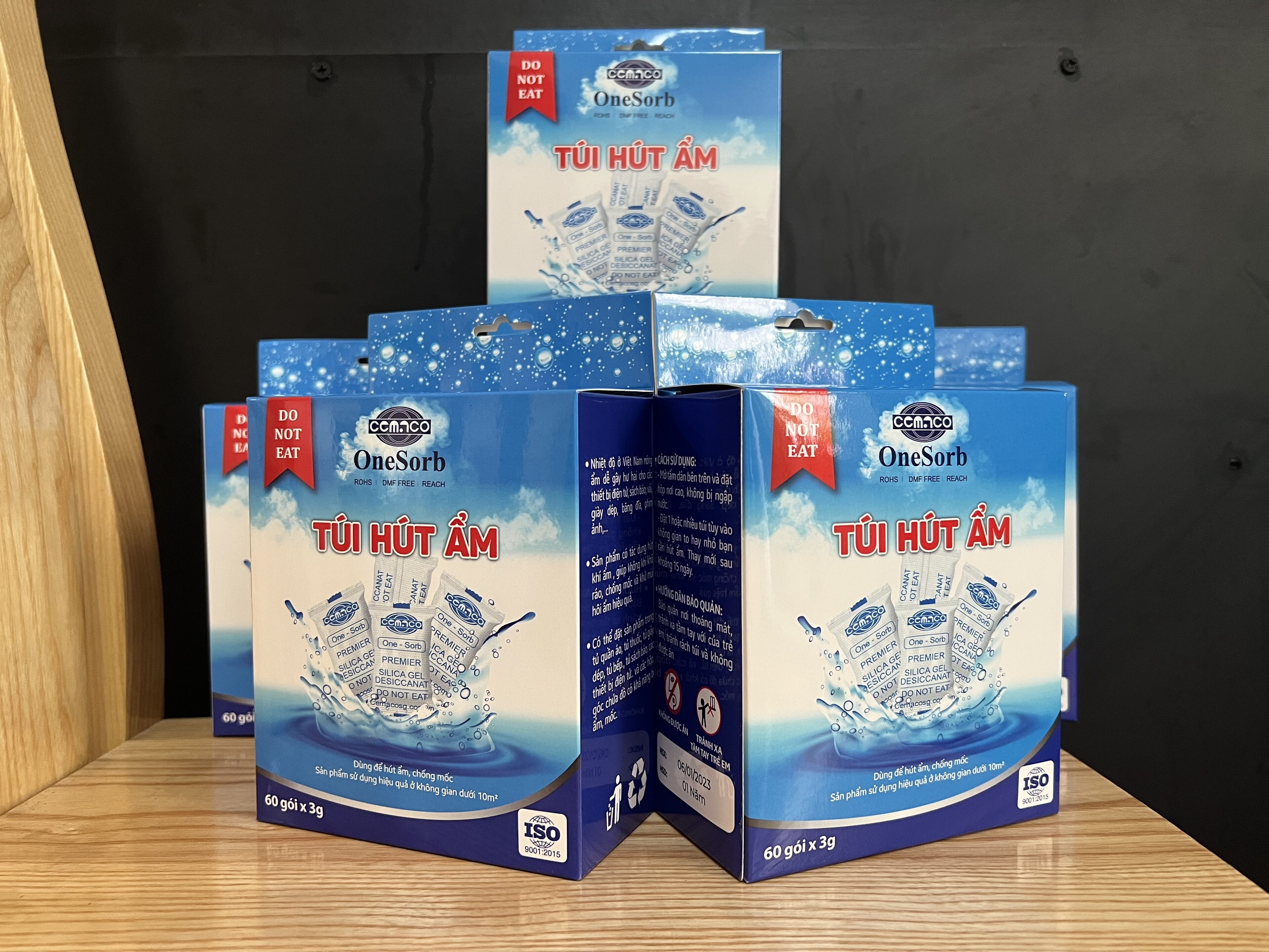 Hộp gồm 60 gói hút ẩm x 3g Silicagel, đặt trong tủ quần áo, máy ảnh, tủ giày dé Sản xuất đóng gói bởi CemacoSG đạt tiêu chuẩn ISO 9001:2015 uy tín hơn 20 năm,