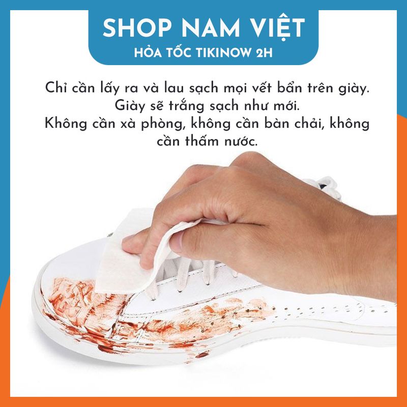 KHĂN LAU GIÀY SNEAKER Giấy đã tẩm sẵn nc tẩy nên lau cực sạch & nhanh nhé mn. 1 bịch 30 tờ Mỗi lần lau chỉ cần 1-2 tờ là đủ sạch rồi
