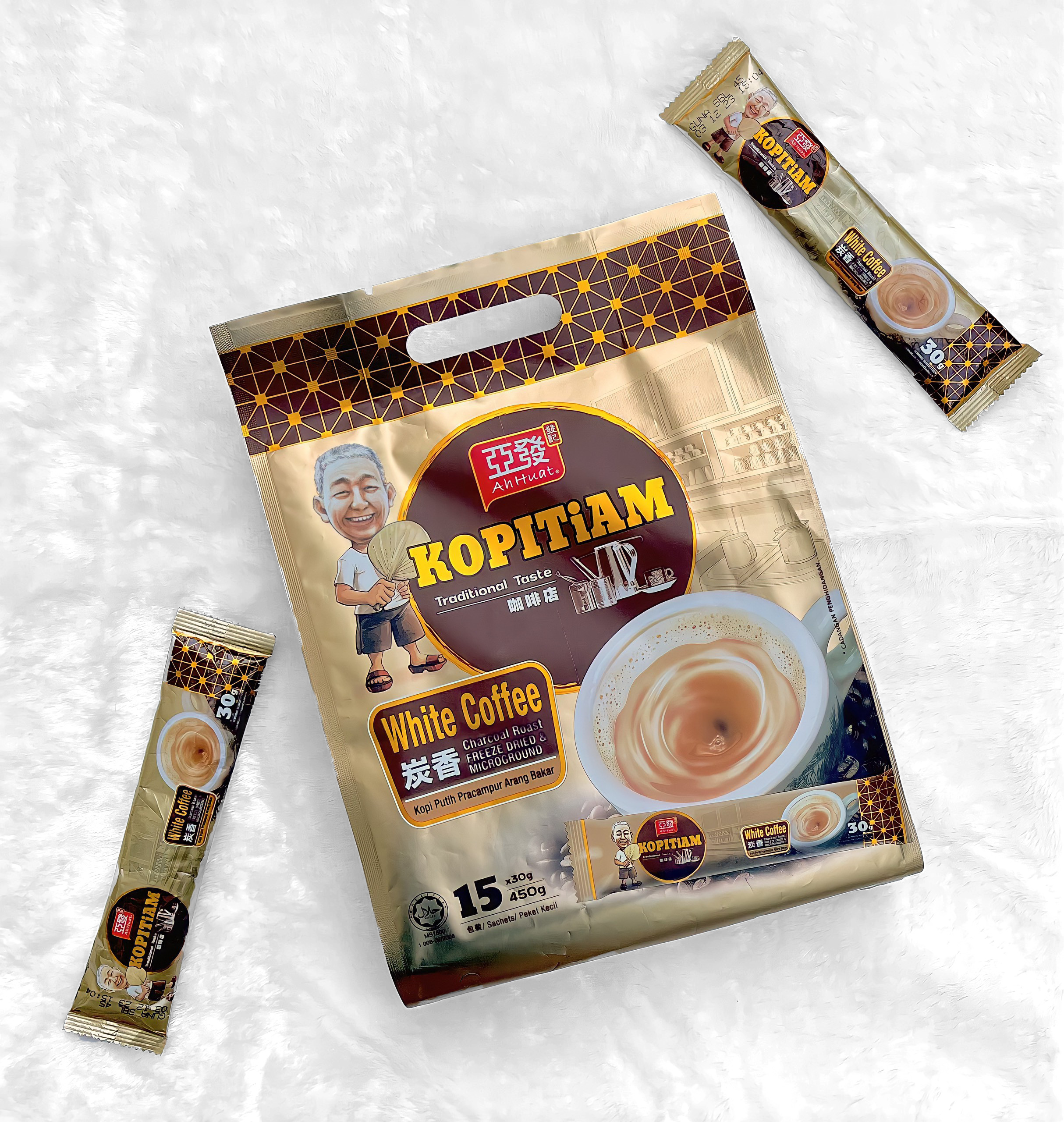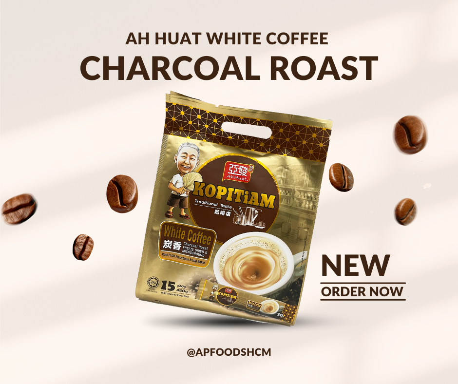 ✨[Gói lẻ] Cà phê trắng than hoạt tính Kopitiam Malaysia (Ah Huat White Coffee Charcoal Roast Instant)