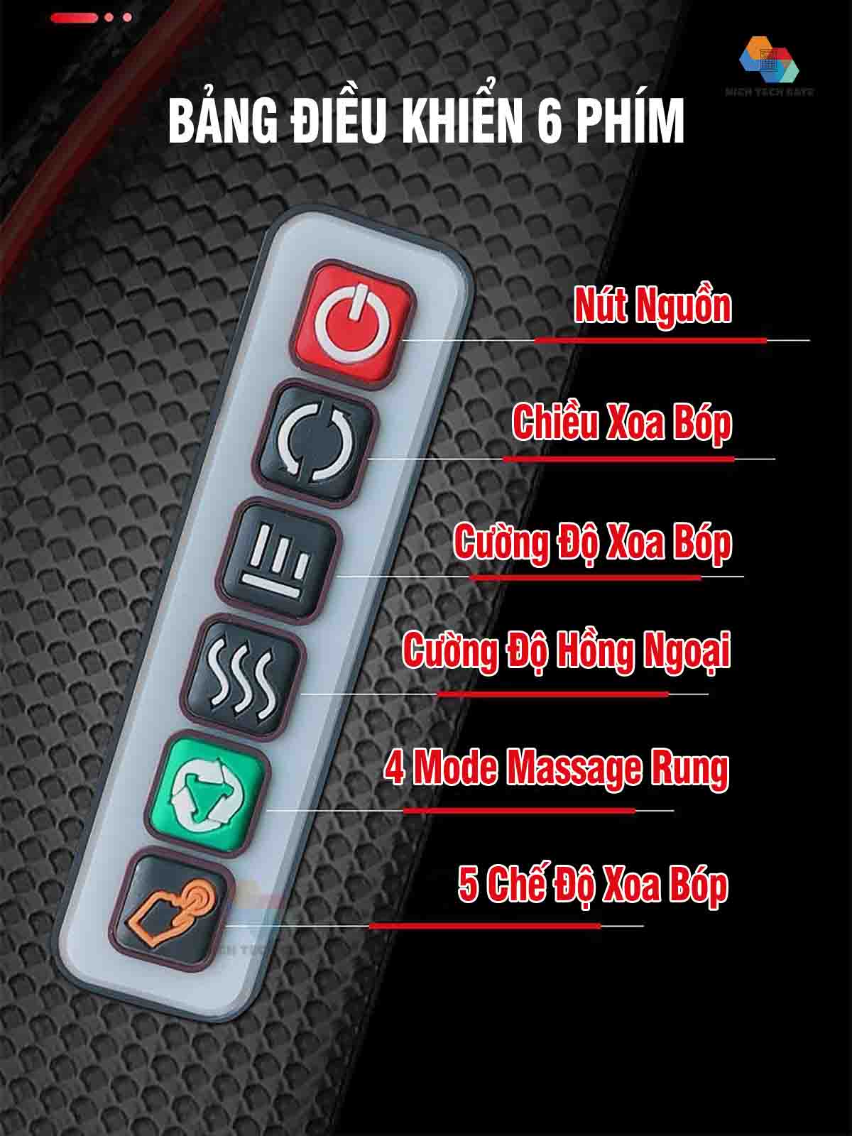 Gối Massage Hồng Ngoại 16 Bi Trị Liệu 6 tính năng cùng 3 mức cấp độ massage khác nhau, tính năng hồng ngoại, xoay đảo chiều, tiết kiệm năng lượng và tính năng chuyển đổi