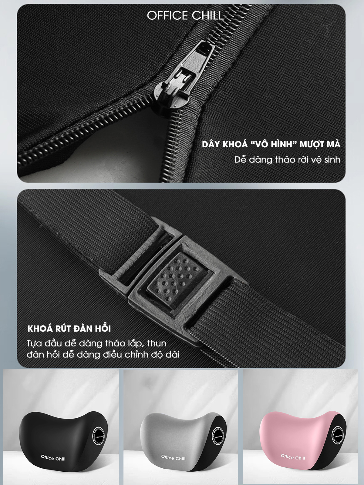 Thiết kế sản phẩm là bản cập nhật hoàn thiện nhất dựa trên các nghiên cứu về cơ thể con người, tinh tế từ những chi tiết nhỏ. Gối tựa lưng tựa đầu được chế tác từ cao su non cao cấp, mang lại cảm giác mềm mại nhưng vẫn đủ chắc chắn để hỗ trợ cơ thể một cách tối ưu. Với khả năng chịu lực và thoáng khí, cao su non không chỉ giúp bạn cảm thấy thoải mái mà còn duy trì độ bền lâu dài của sản phẩm, bảo hành 90 ngày chính hãng tại Office Chill.