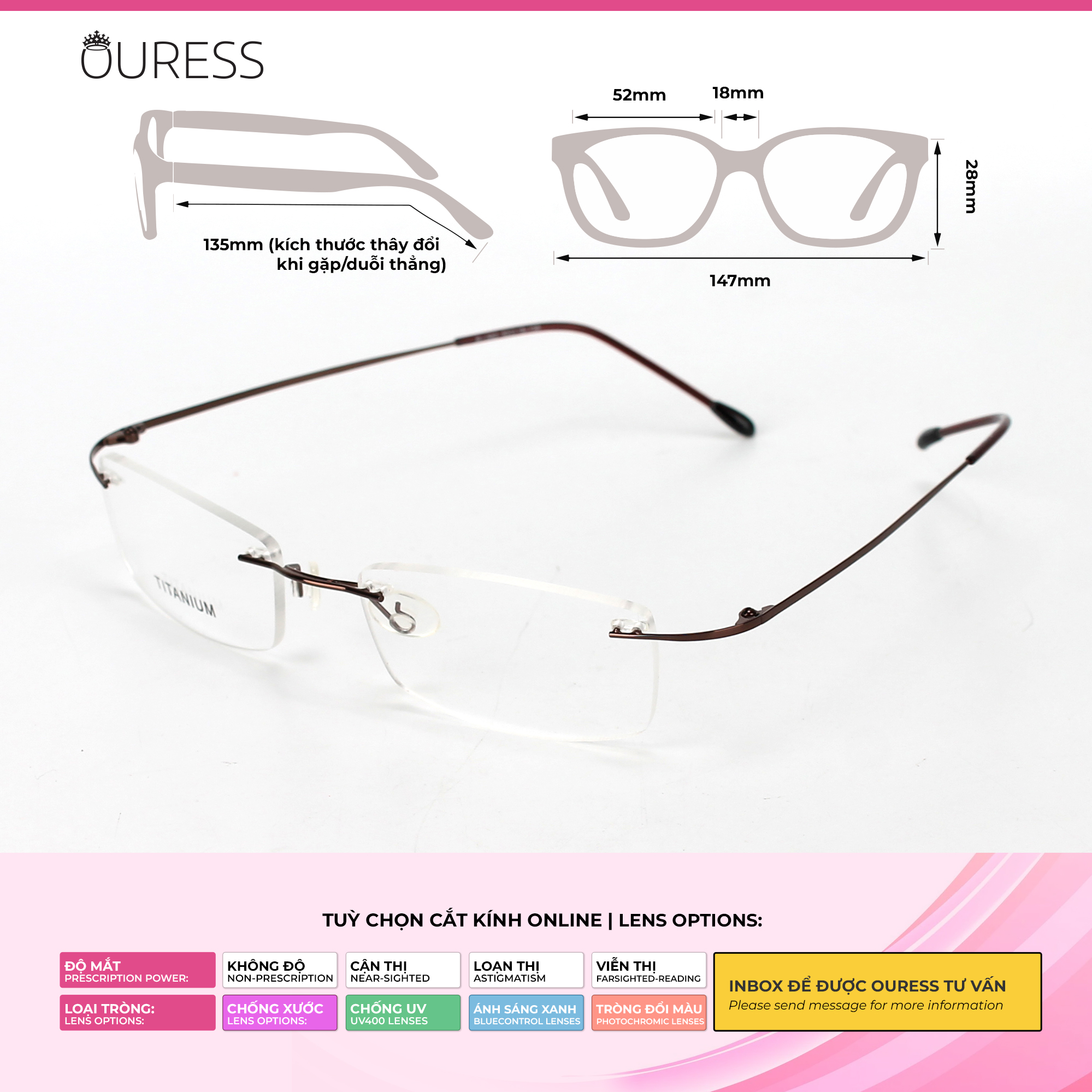Lưu ý: Quý khách vui lòng cung cấp đầy đủ thông tin như trên cho Ouress trong vòng 02 ngày kể từ ngày đặt hàng. Hết thời hạn mà không nhận được thông tin, Ouress xin phép được gửi mặc định tròng 0 độ để đảm bảo quy định giao hàng của sàn.