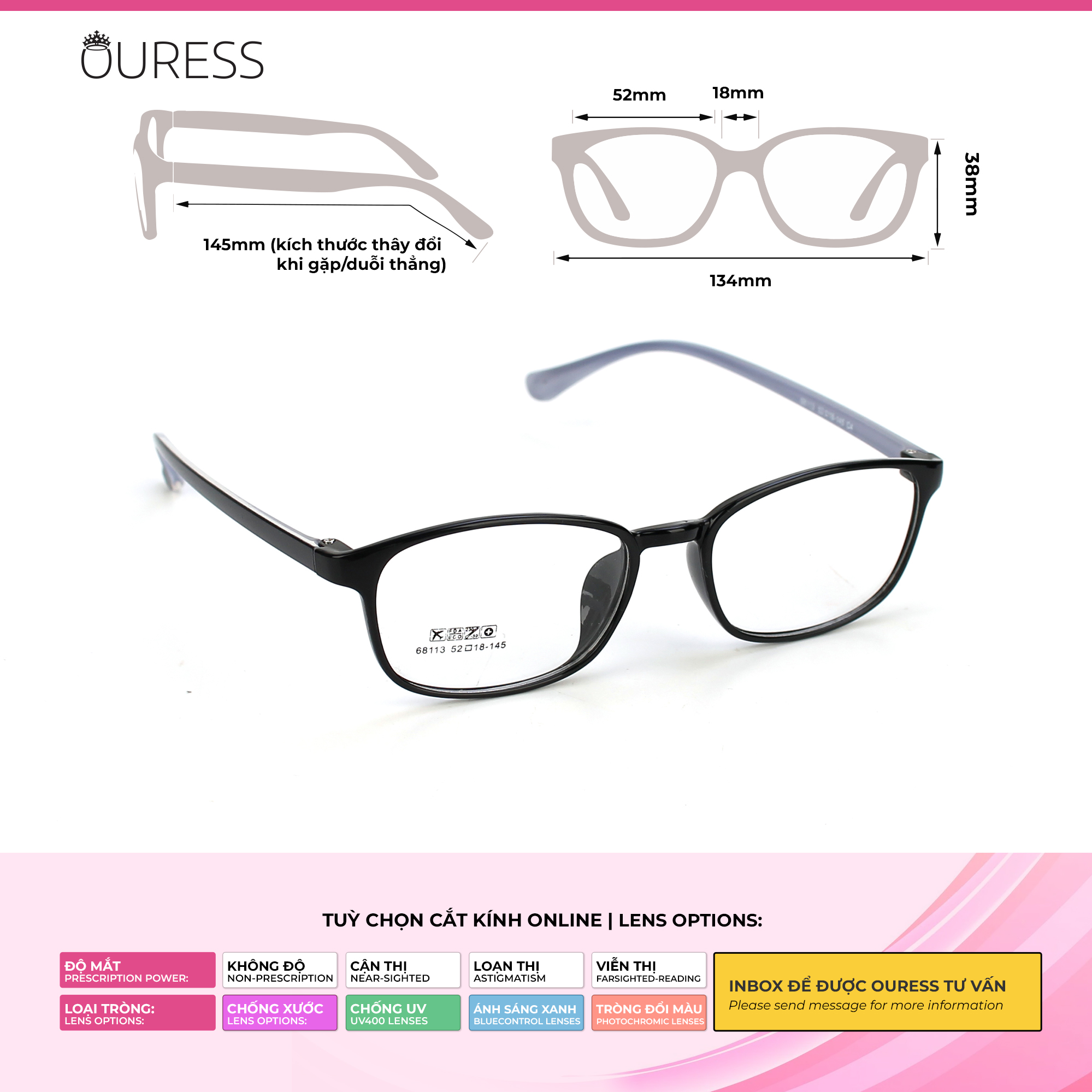 ✨Gọng kính nhựa 68113 thời trang nam nữ siêu nhẹ siêu bền OURESS