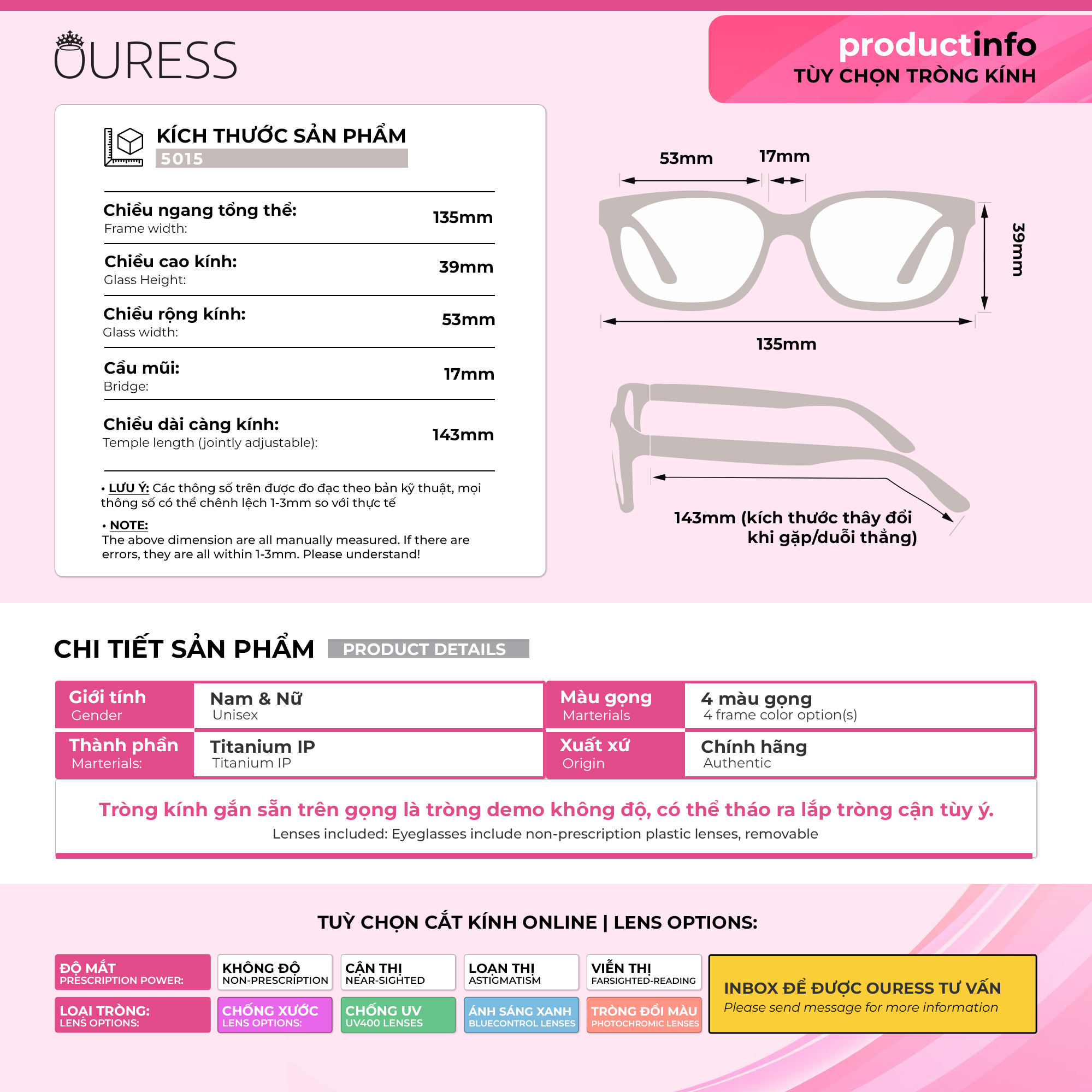 - Bộ sản phẩm Kính Ouress gồm: Tròng kính là tròng demo không độ Hộp Kính Khăn Lau Kính