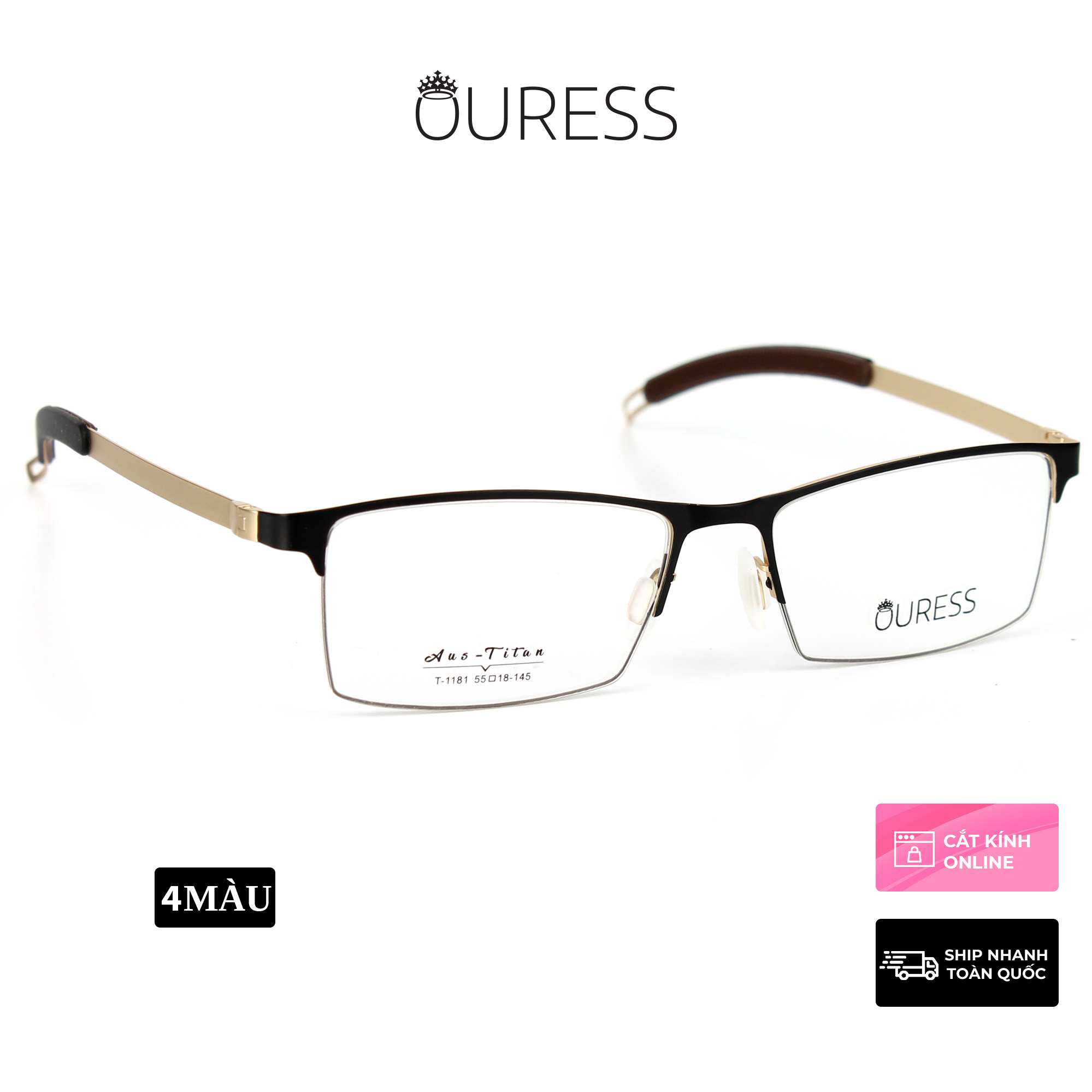 GỌNG KÍNH TITANIUM NỬA KHUNG ( XẺ CƯỚC) CAO CẤP THỜI TRANG NAM