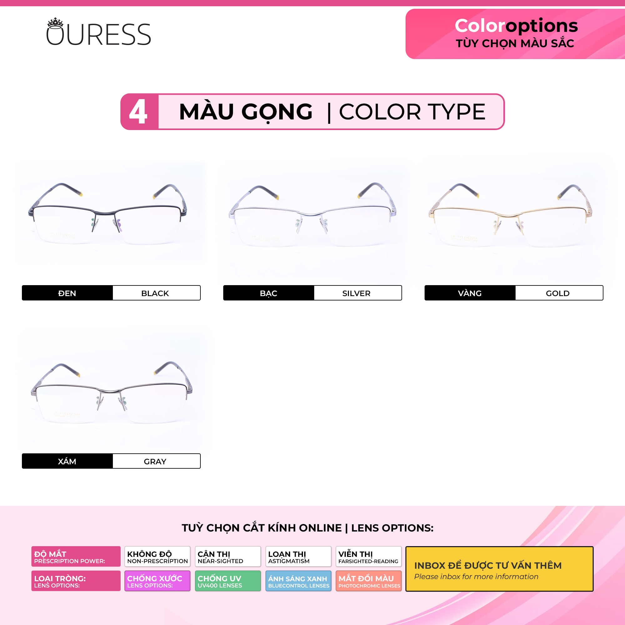 Lưu ý: Quý khách vui lòng cung cấp đầy đủ thông tin như trên cho Ouress trong vòng 02 ngày kể từ ngày đặt hàng. Hết thời hạn mà không nhận được thông tin, Ouress xin phép được gửi mặc định tròng 0 độ để đảm bảo quy định giao hàng của sàn.