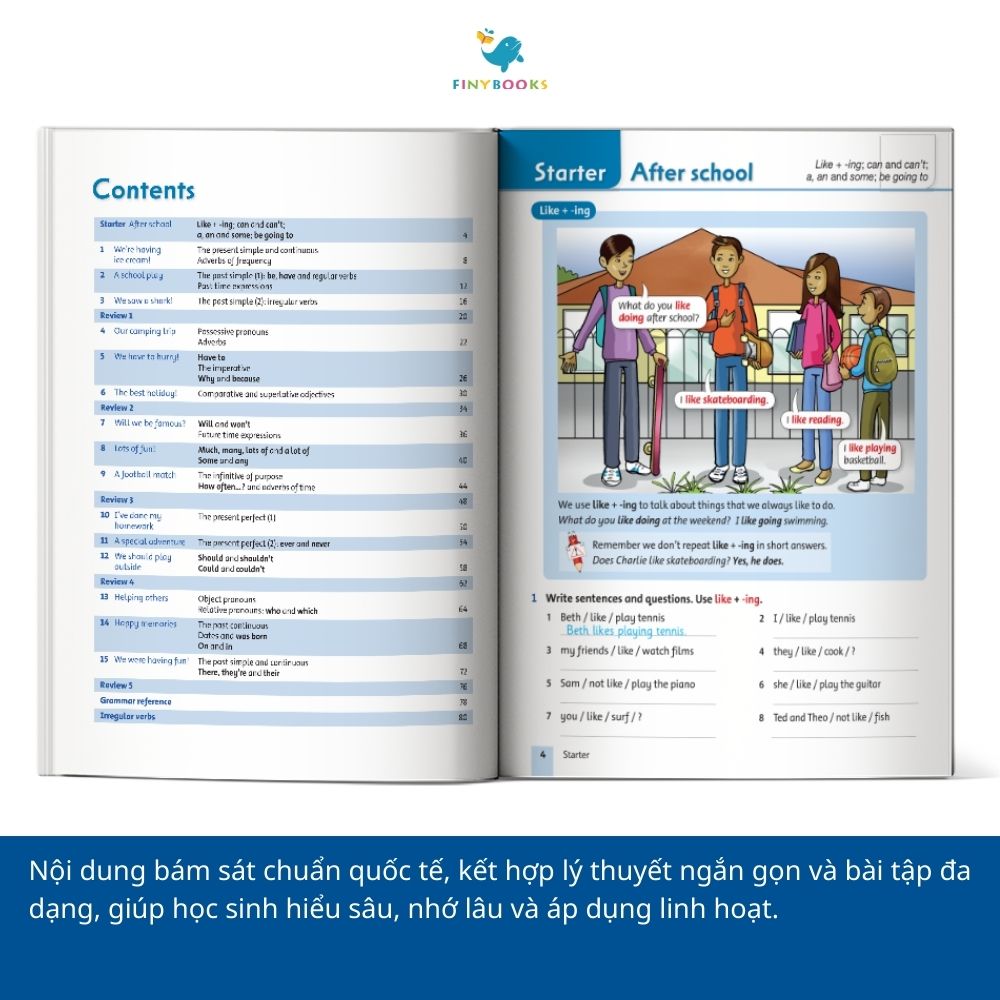 Nếu bạn muốn xây dựng nền tảng ngữ pháp tiếng Anh chắc chắn, rèn luyện kỹ năng vận dụng tự nhiên trong giao tiếp và bài thi, thì Grammar Friends 4 là lựa chọn không thể bỏ qua. Cuốn sách không chỉ giúp học đúng – học đủ mà còn giúp học sinh yêu thích tiếng Anh nhờ phương pháp trình bày trực quan, thực tiễn và đầy cảm hứng.