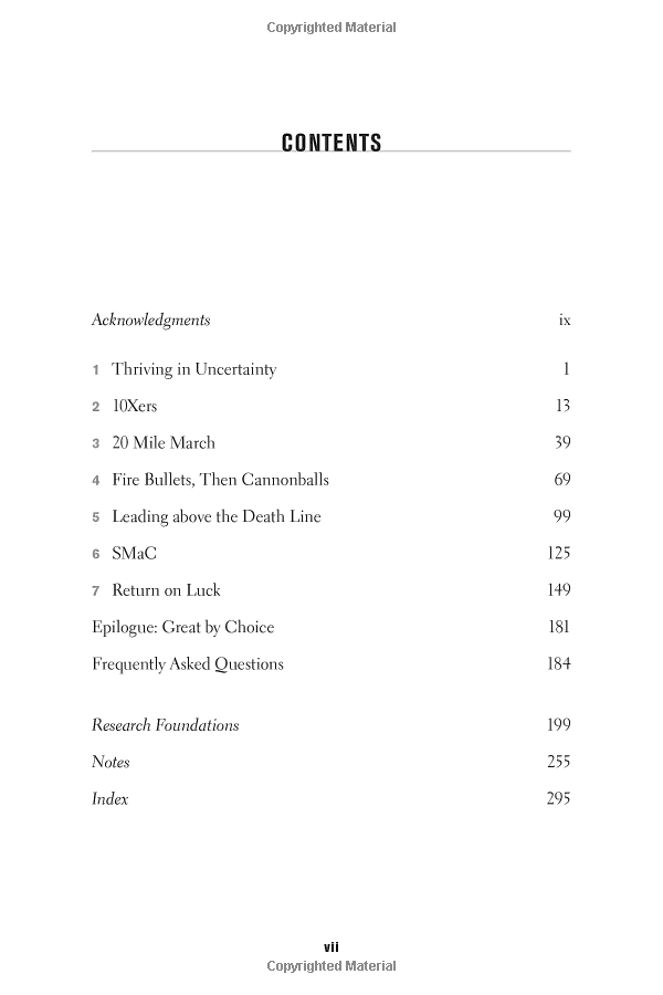 The authors challenge conventional wisdom with thought-provoking, sticky, and supremely practical concepts. They include: 10Xers; the 20 Mile March; Fire Bullets, Then Cannonballs; Leading above the Death Line; Zoom Out, Then Zoom In; and the SMaC Recipe.
