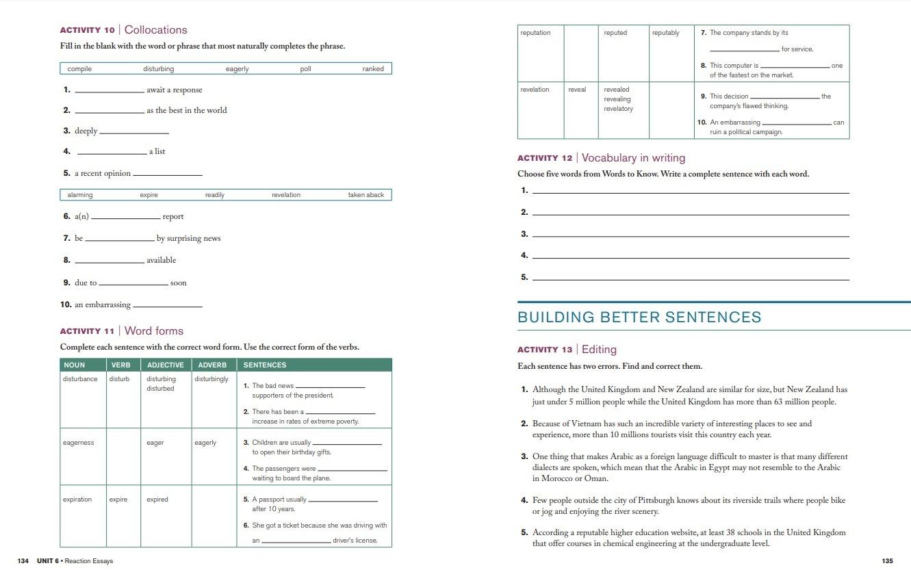 Part 5: New Test Prep section gives a test-taking tip and timed task to prepare for high-stakes standardized tests, including IELTs and TOEFL. The new guided online writing activity takes students through the entire writing process with clear models for reference each step of the way.