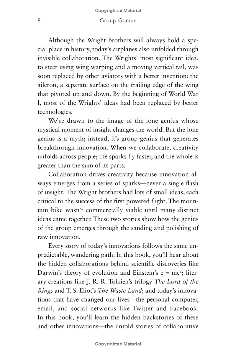 Creativity has long been thought to be an individual gift, best pursued alone; schools, organizations, and whole industries are built on this idea. But what if the most common beliefs about how creativity works are wrong? Group Genius tears down some of the most popular myths about creativity, revealing that creativity is always collaborative -- even when you're alone. Sharing the results of his own acclaimed research on jazz groups, theater ensembles, and conversation analysis, Keith Sawyer shows us how to be more creative in collaborative group settings, how to change organizational dynamics for the better, and how to tap into our own reserves of creativity.
