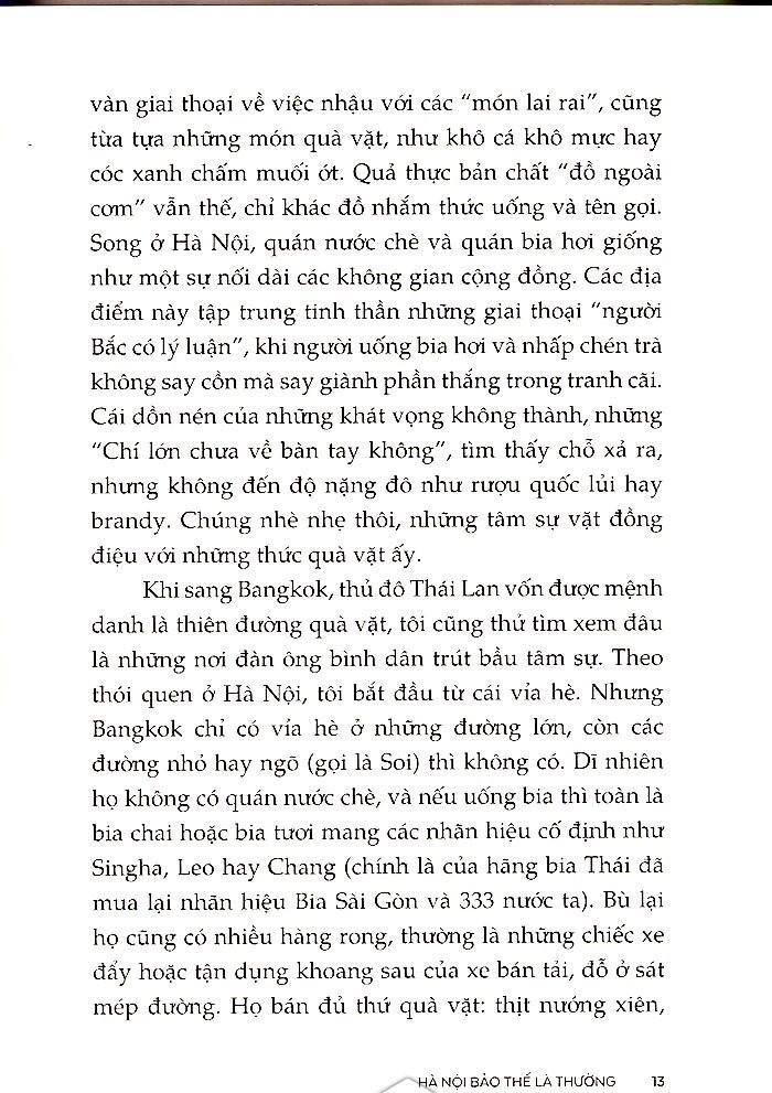 Ở Hà Nội, quán nước chè và quán bia hơi giống như một sự nối dài các không gian cộng đồng. Các địa điểm này tập trung tinh thần những giai thoại “người Bắc có lý luận”, khi người uống bia hơi và nhấp chén trà không say cồn mà say giành phần thắng trong tranh cãi. Cái dồn nén của những khát vọng không thành, những “Chí lớn chưa về bàn tay không”, tìm thấy chỗ xả ra, nhưng không đến độ nặng đô như rượu quốc lủi hay brandy. Chúng nhè nhẹ thôi, những tâm sự vặt đồng điệu với những thức quà vặt ấy.