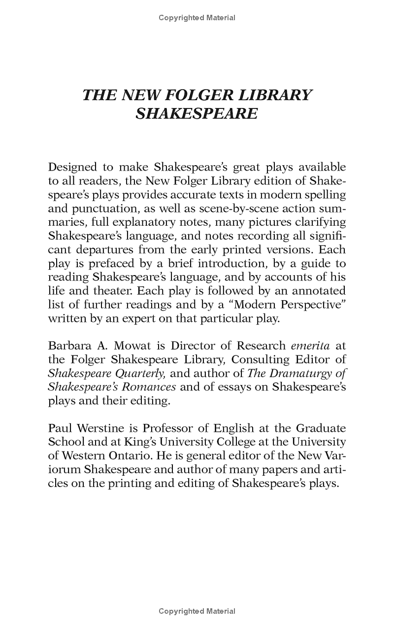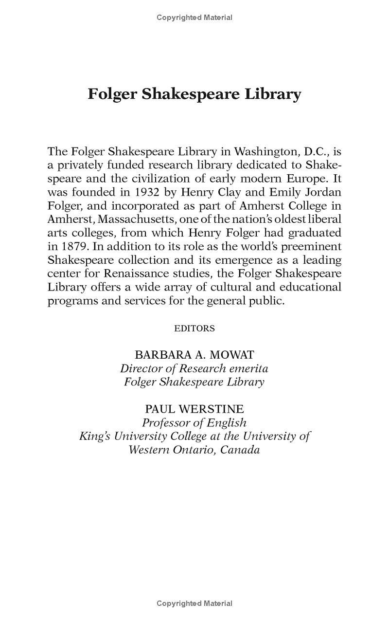 The Library offers the definitive, updated edition of "Hamlet," with newly edited text, explanatory notes, scene summaries, and more. "Hamlet" is Shakespeare's most popular, and most puzzling, play. It follows the form of a "revenge tragedy," in which the hero, Hamlet, seeks vengeance against his father's murderer, his uncle Claudius, now the king of Denmark. Much of its fascination, however, lies in its uncertainties. Among them: What is the Ghost--Hamlet's father demanding justice, a tempting demon, an angelic messenger? Does Hamlet go mad, or merely pretend to? Once he is sure that Claudius is a murderer, why does he not act? Was his mother, Gertrude, unfaithful to her husband or complicit in his murder? The authoritative edition of "Hamlet "from The Shakespeare Library, the trusted and widely used Shakespeare series for students and general readers, is now available as an eBook. Features include: - The exact text of the printed book for easy cross-reference - Hundreds of hypertext links for instant navigation - Freshly edited text based on the best early printed version of the play - Full explanatory notes conveniently placed on pages facing the text of the play - Scene-by-scene plot summaries - A key to famous lines and phrases - An introduction to reading Shakespeare's language - Illustrations from the Shakespeare Library's vast holdings of rare books - An essay by a leading Shakespeare scholar providing a modern perspective on the play