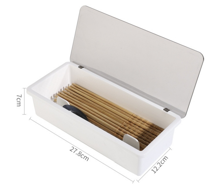 Hộp nhựa chopsticks đựng muỗng đũa Kháng Khuẩn Giúp bảo vệ dụng cụ ăn uống của bạn luôn luôn kho ráo và tránh khỏi những bụi bẩn. Chất liệu: nhựa cứng pp và nắp đậy MIKA trong suốt cao cấp Kích thước : 27.5 x 12,5 x 7,5 cm