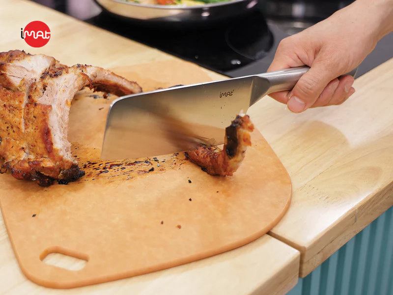 Bộ 3 dao đa dụng : 01 Dao gọt 5" đa năng iMat: dài 24 cm (cán) I 01 Dao Chef đa năng iMat: dài 34.4cm (cán) I 01 Dao Băm chặt, thái bản dày iMat: dài 32.4cm (cán)