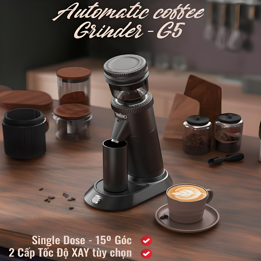 - MÁY XAY CÀ PHÊ HIBREW G5 - SINGLE DOSE sẽ là 1 lựa chọn hoàn hảo cho những ai đam mê cà phê thứ thiệt. Với việc sở hữu hàng loạt các đặc điểm nổi trội hiệu quả Chức năng điều chỉnh độ mịn cà phê