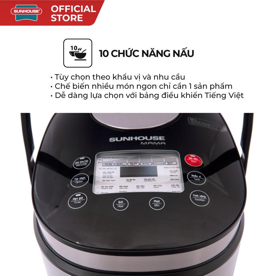 ✨[Hàng Chính Hãng] Nồi cơm điện tử SUNHOUSE MAMA 1.8L màu đen SHD8903