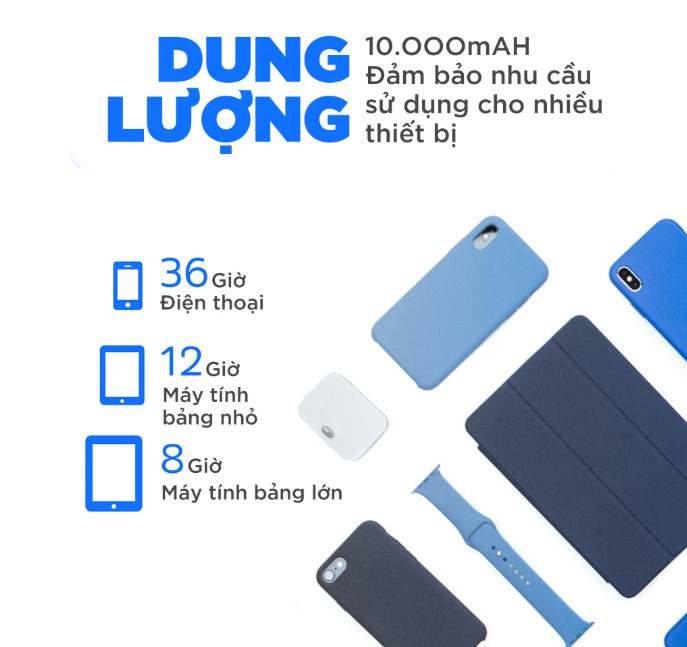 Chiếc pin dự phòng này được thiết kế để đáp ứng nhu cầu sạc nhanh và linh hoạt cho các thiết bị di động. Với dung lượng lớn 10.000 mAh (hai cell 5.000 mAh) giúp