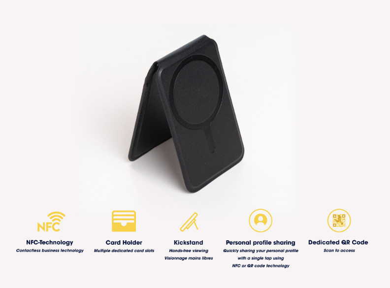 Ví 9Fit EBiz Mag Wallet Stand, Ví da hít từ tính Magnetic kiêm chân đến xoay 360 độ tích hợp công nghệ NFC - Chính hãngTính năng:Ví da EBiz tích hợp công nghệ NFC, dễ dàng chia sẻ hồ sơ cá nhân, tra...