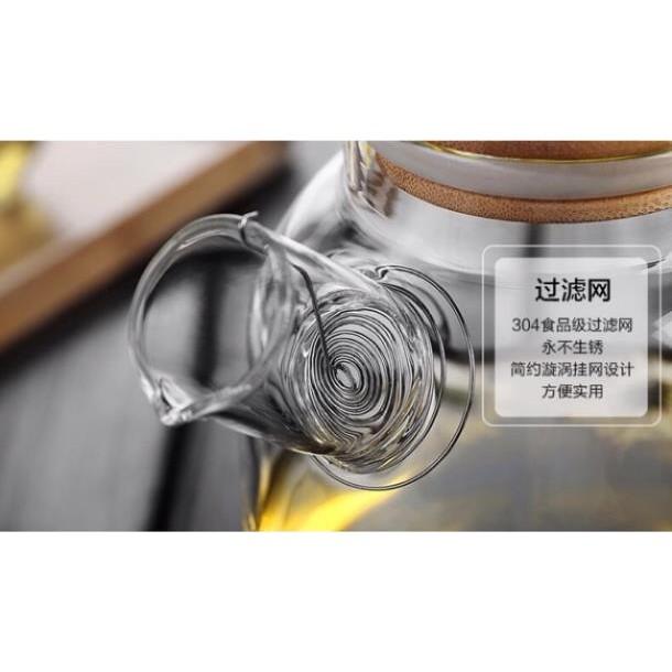 ✨(HÀNG ĐẸP) Ấm thuỷ tinh chịu nhiệt nắp gỗ 800ml