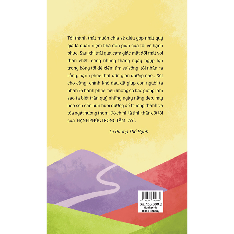 I. THÔNG TIN CHUNG VỀ SÁCH "HẠNH PHÚC TRONG TẦM TAY" Nhà xuất bản Phụ nữ Việt Nam vừa phát hành tác phẩm "Hạnh phúc trong tầm tay" của tác giả Lê Dương Thể Hạnh vào tháng 10/2023 trên toàn quốc, nhân dịp ngày Phụ nữ Việt Nam 20/10 - tháng tôn vinh nữ giới, đặc biệt những tác giả nữ. Có thể nói, "Hạnh phúc trong tầm tay" của Lê Dương Thể Hạnh ra mắt bạn đọc rất đúng thời điểm, vì đây là dịp cô có thể chia sẻ nhiều điều về hành trình tìm đến mặt trời của mình… Hạnh phúc trong tầm tay của tác giả Lê Dương Thể Hạnh thuộc dòng sách bổ trợ kỹ năng sống, là "rút ruột" chia sẻ từ tác giả về những đức tính quý báu mà con người cần có trong đời để cuộc sống trở nên chất lượng, trọn vẹn hơn. Là một tác giả khuyết tật, viết sách bằng phần mềm hỗ trợ giọng nói và nhờ sự giúp đỡ của cộng sự, Lê Dương Thể Hạnh cho thấy một nghị lực phi thường trong việc gieo những con chữ thiện lương, được trau chuốt cẩn thận để giúp vun bồi tâm hồn những bạn đọc "thuận duyên" đọc sách. Đồng hành cùng bóng tối hơn 15 năm, hơn ai hết, tác giả thấu hiểu việc "vượt tối" để tìm đến ánh sáng lương thiện trong "cõi người ta" này vô cùng gian nan. Và với những người thuộc nhóm "còn lại" như chính bản thân tác giả - khuyết tật đủ thứ, khả năng di chuyển và hoạt động hạn chế - hành trình "vượt tối" còn gian nan hơn gấp nhiều lần. Tuy vậy, chị không bỏ cuộc. Ở độ tuổi mà mọi người đã yên bề gia thất, con cái lớn khôn, tác giả Lê Dương Thể Hạnh, như bộc bạch của chị trong các trang sách, vẫn vui vẻ bên gia đình, cha mẹ, vẫn tận hưởng cuộc sống theo cách của riêng mình, và để biết rằng, ngày nào còn thở trên cuộc đời này thôi đã là may mắn lắm rồi. Nhưng những điều mà chị muốn độc giả hướng đến không dừng lại ở đó. Chị tâm sự: "Đến với Hạnh phúc trong tầm tay, có lẽ bạn sẽ tạm quên đi những nỗi đau ở quá khứ, và bạn cũng xa rời gánh nặng áo cơm để trở về với những giá trị - rất bình dị và rất chân thật từ trong sâu thẳm tâm hồn mình". Các chủ đề mà tác giả Lê Dương Thể Hạnh xoáy sâu vào gồm có bình yên, bao dung, khiêm tốn, yêu thương, lễ - nghĩa - trí - tín, tương trợ, tự do và hạnh phúc. Tuy xa mà gần, tuy gần mà xa, chị dẫn dắt độc giả qua từng chủ đề một cách dí dỏm, lối dẫn chuyện có duyên, văn phong khúc chiết để thấy được rằng, hạnh phúc không ở đâu xa mà nằm trong lòng bàn tay ta! Chị bộc bạch: "… Khi may mắn được sinh ra với cơ thể và trí não của một con người, có lẽ ta nên kích hoạt sóng não dành cho con người, vượt qua những nỗi sợ, mạnh dạn tiến về phía trước để đón nhận một tương lai tốt đẹp và thanh thản lưu lại những điều kỳ diệu cho cuộc đời. Và đây chính là tinh thần cốt lõi của "HẠNH PHÚC TRONG TẦM TAY"".