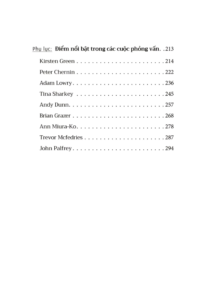 Cách này đã hiệu quả. Gupta đã có hàng trăm cuộc trò chuyện cởi mở và chân thành với những con người từng trải và sáng suốt. Họ là người sáng lập các công ty khởi nghiệp kỳ lân, nhà sản xuất các bộ phim đoạt giải Oscar, bậc thầy ẩm thực, thành viên Quốc hội, giám đốc điều hành tại các thương hiệu lớn như L và P, và thậm chí là cả các chỉ huy quân sự tại Lầu Năm Góc.