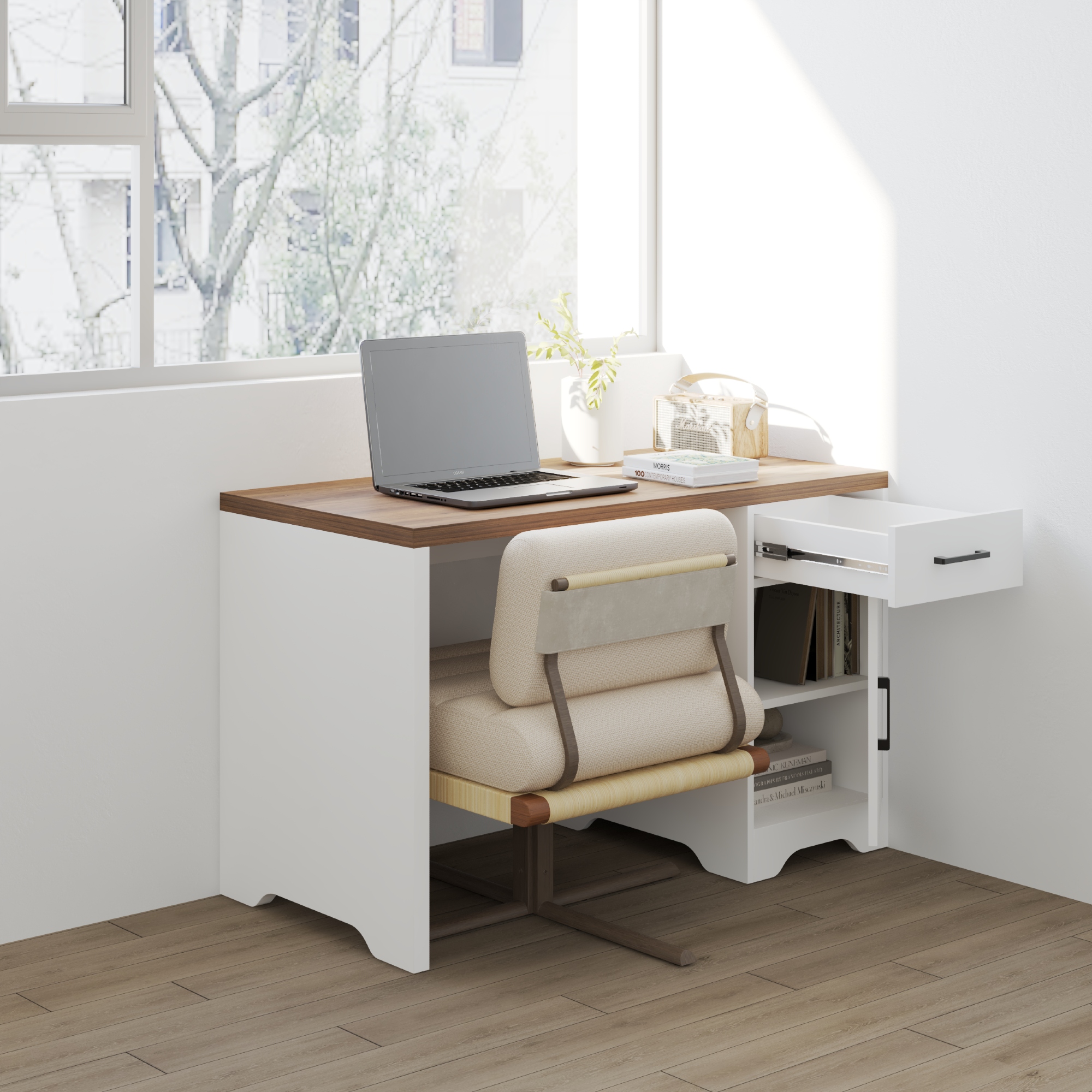 ✨HAPPY FURNITURE , Bàn làm việc 1 ngăn kéo 1 cửa mở - SAFA , BAN_163 , 120cm x 59cm x 75cm DxRxC