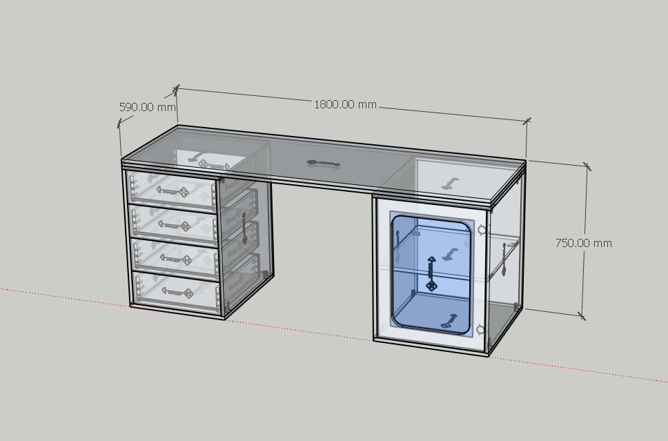✨HAPPY FURNITURE , Bàn làm việc 4 ngăn kéo 1 cửa kính - NOAH , BAN_160 , 180cm x 59cm x 75cm DxRxC