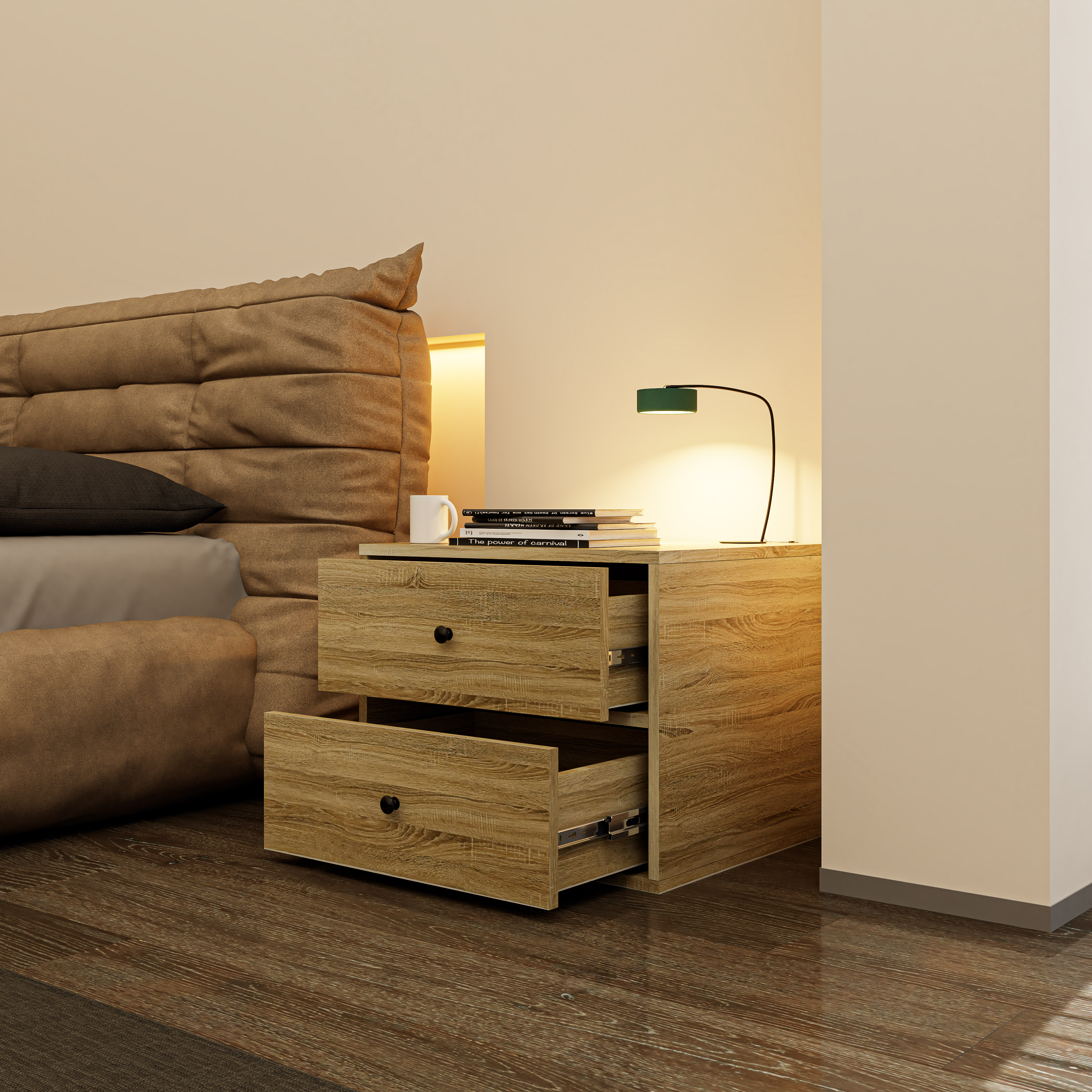 ✨HAPPY FURNITURE , ZACY - Táp đầu giường 2 ngăn kéo , THK_213 , 55cm x 45cm x 44cm DxRxC, Sản phẩm phổ thông