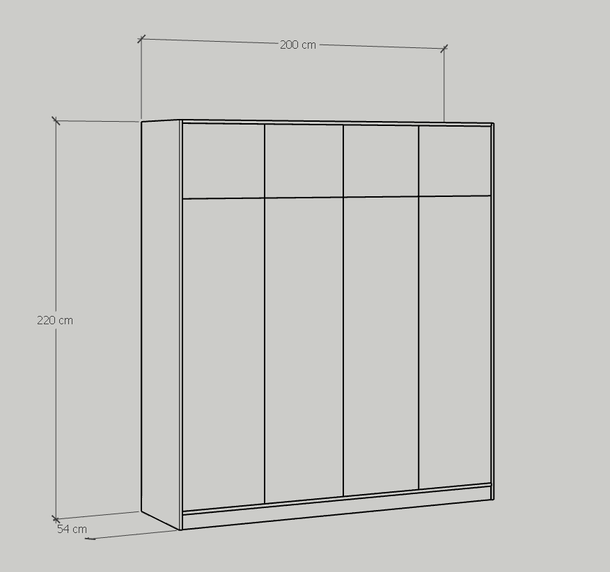 Kích thước sản phẩm : 200cm x 54cm x 220cm ( Ngang x sâu x cao )