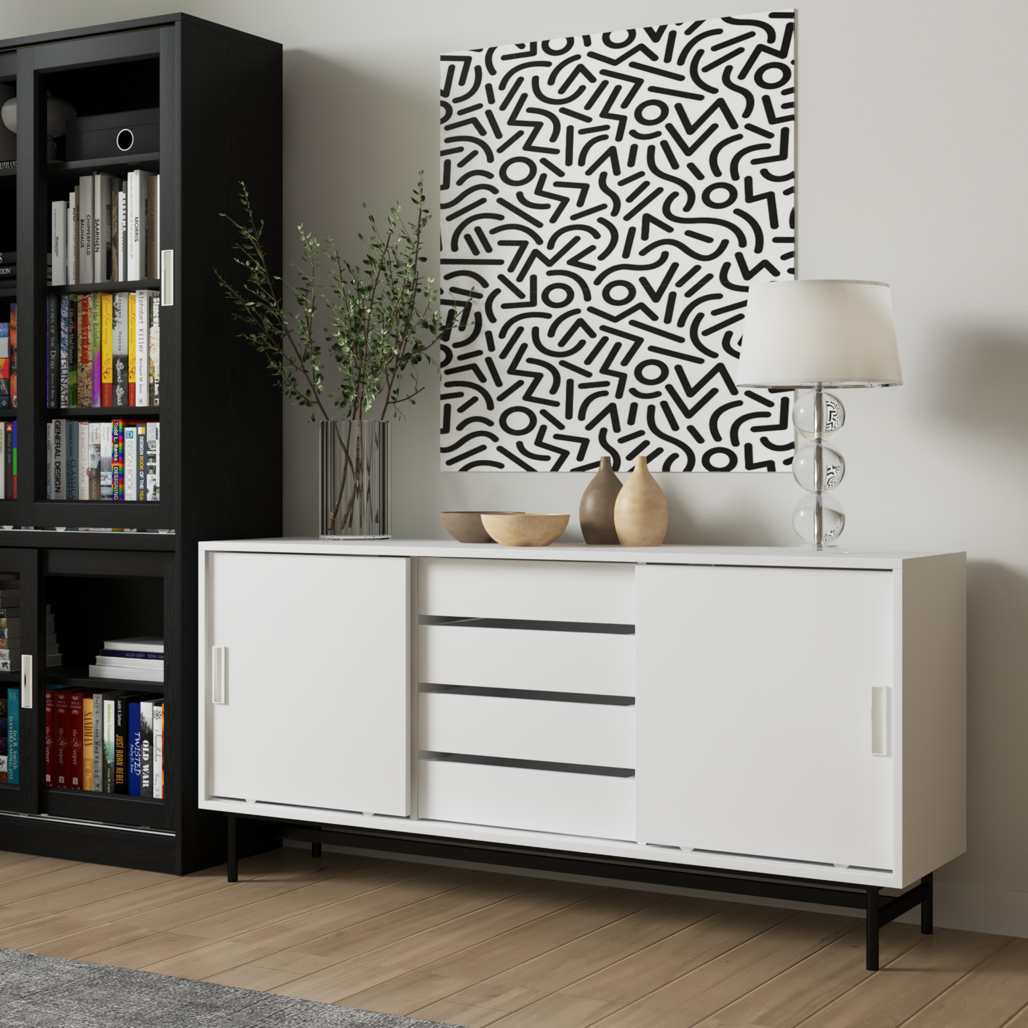 ✨[Happy Home Furniture] LUCA, Tủ lưu trữ 4 ngăn cánh lùa - Chân sắt, 150cm x 36cm x 70cm ( DxRxC), TCL_022