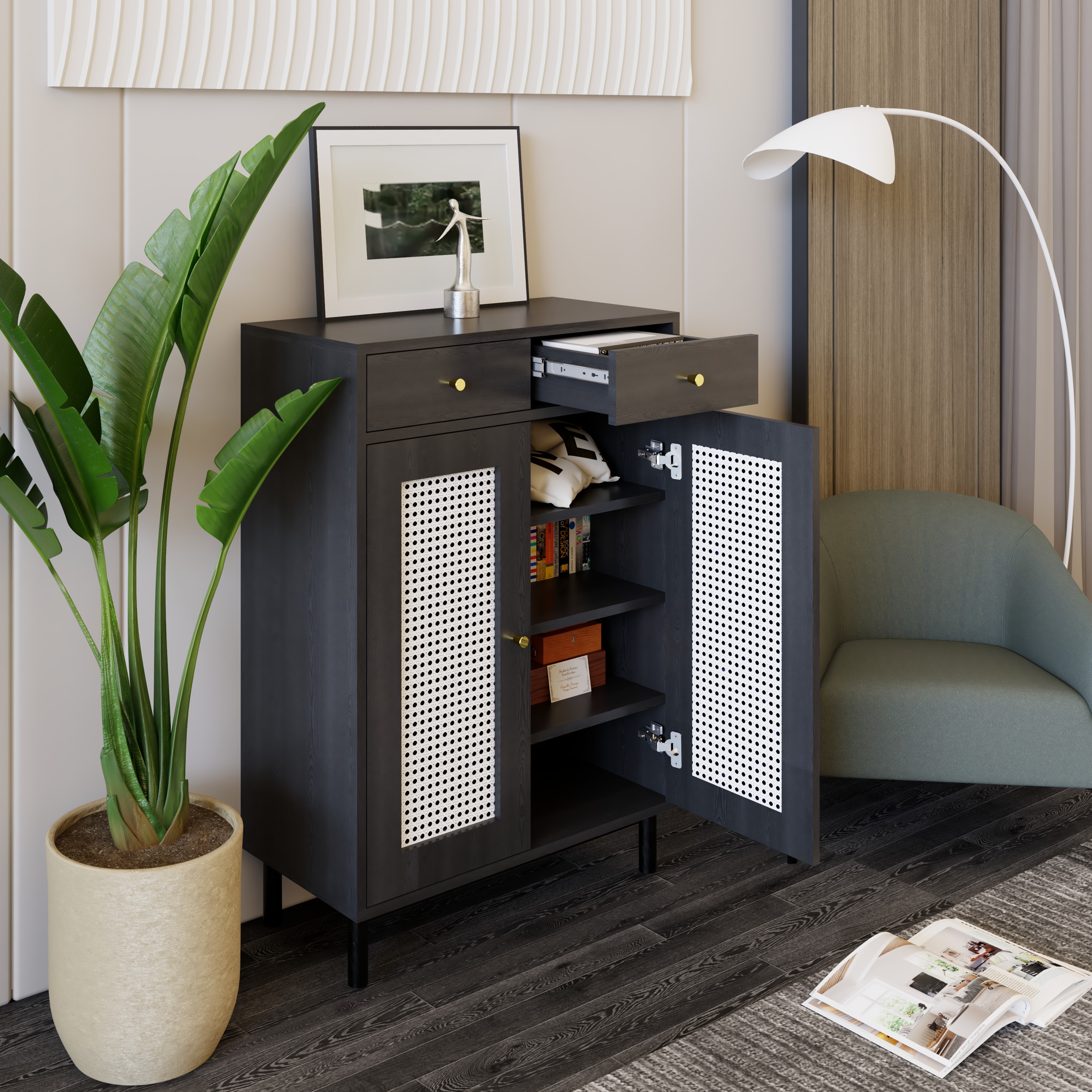 ✨[Happy Home Furniture] ROTAN, Tủ giày 2 ngăn kéo 2 cửa mở - chân sắt, 70cm x 34cm x 100cm ( DxRxC), TCM_131