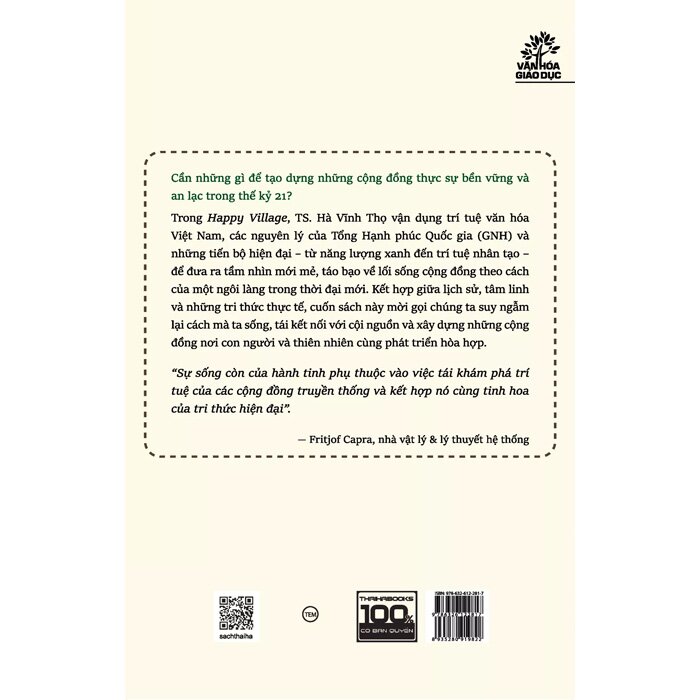 Happy Village - Ngôi làng Hạnh phúc không phải là một viễn tưởng xa xôi, mà là một mô hình sống đầy tính thực tiễn và nhân văn. Với kinh nghiệm nhiều năm làm việc trong các tổ chức quốc tế như UNESCO, Hội Chữ thập đỏ, Viện Chỉ số Hạnh phúc Quốc gia Bhutan, TS. Hà Vĩnh Thọ đã đúc kết những nguyên lý phát triển con người bền vững và hòa hợp vào một mô hình sống cụ thể, một “ngôi làng” có thể nhân rộng ở bất cứ đâu trên thế giới, bắt đầu từ Việt Nam.