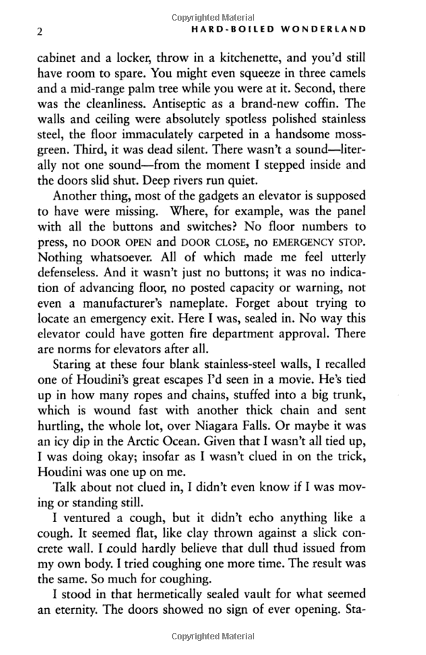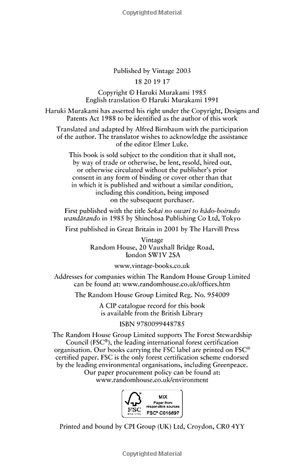 A narrative particle accelerator that zooms between Wild Turkey Whiskey and Bob Dylan, unicorn skulls and voracious librarians, John Coltrane and Lord Jim. Science fiction, detective story and post-modern manifesto all rolled into one rip-roaring novel, Hard-boiled Wonderland and the End of the World is the tour de force that expanded Haruki Murakami's international following. Tracking one man's descent into the Kafkaesque underworld of contemporary Tokyo, Murakami unites East and West, tragedy and farce, compassion and detachment, slang and philosophy.