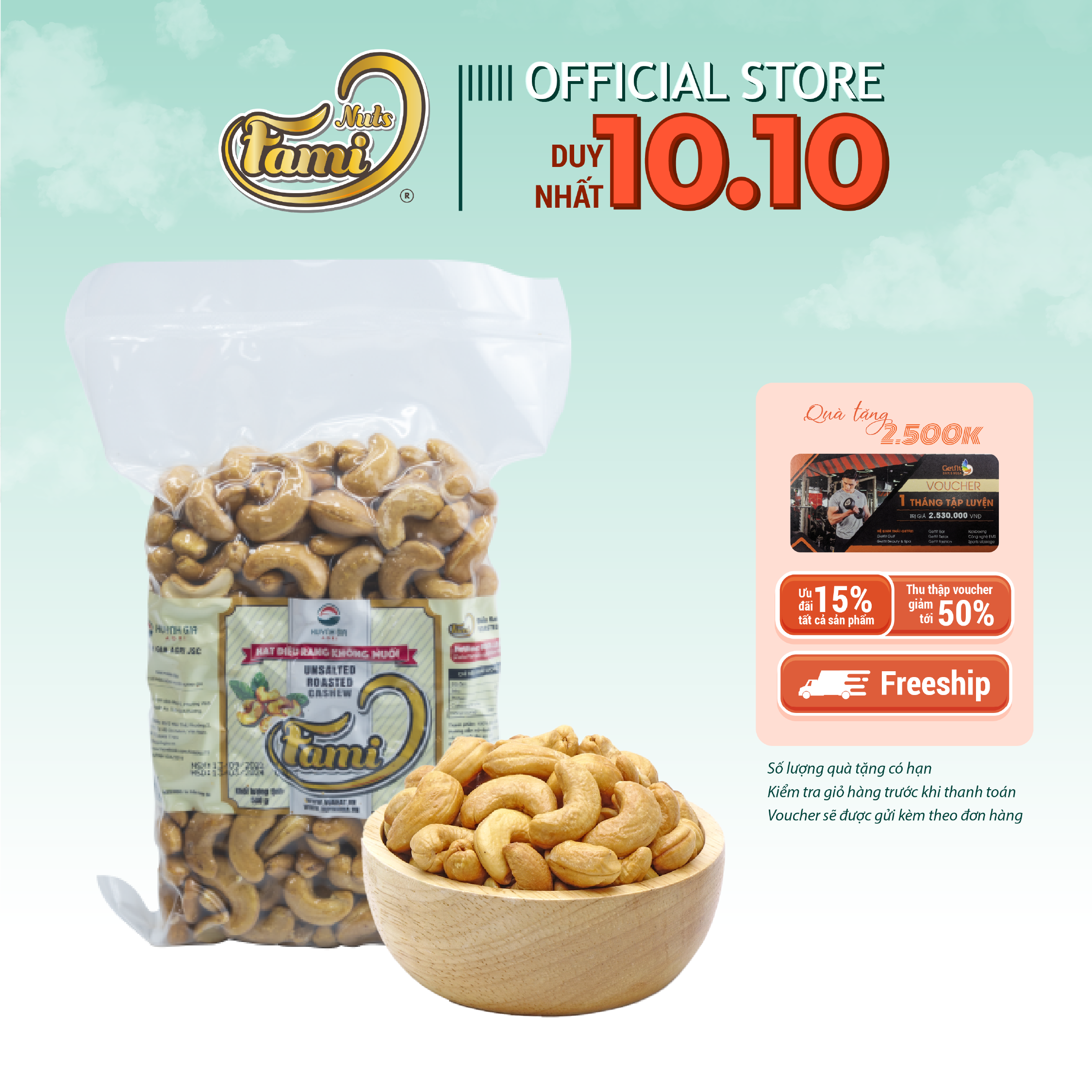 Mua tại Tiktok- Hạt Điều Rang Không Muối Bịch CK Fami chứa hàm lượng dinh dưỡng rất cao, 100g hạt Điều cung cấp 550 Kcalo năng lượng, hơn gấp 2 lần thịt bò.