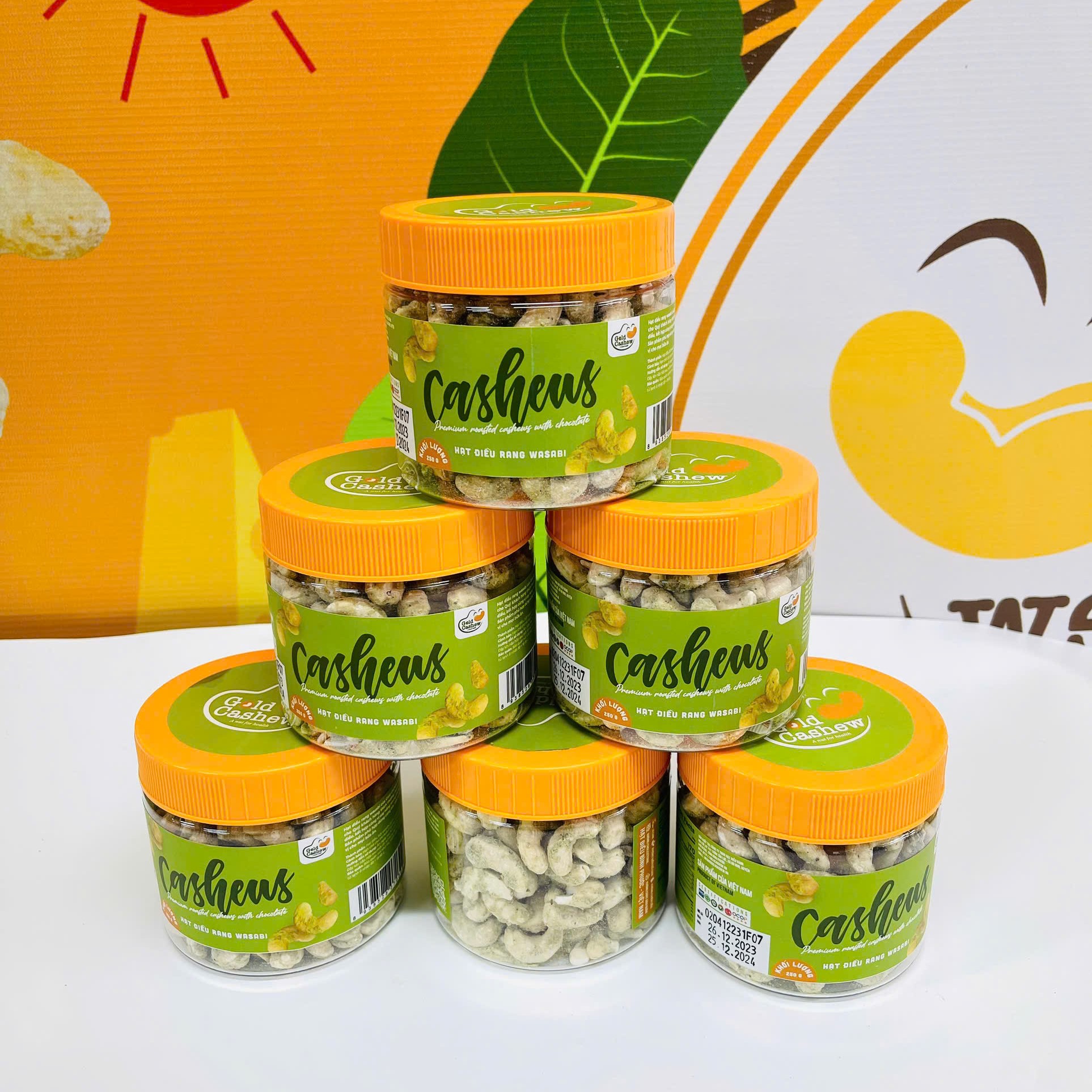 Hạt Điều Rang Wasabi Cao Cấp GOLD CASHEW là lựa chọn hoàn hảo cho món khai vị và món ăn kèm trong các bữa ăn gia đình, gặp gỡ khách quý và cuộc vui bạn bè, hay đôi khi sẽ đơn giản là món ăn nhẹ dùng chung tinh tế bên ấm trà nóng mỗi ngày.