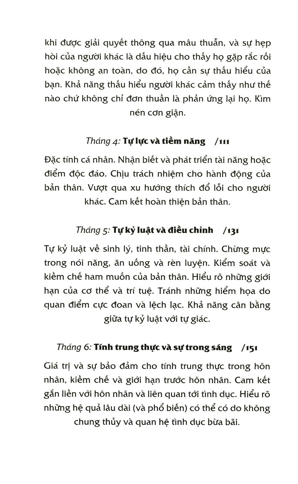 Bên cạnh việc chỉ ra 12 giá trị như 12 hạt giống thích hợp với điều kiện thời tiết của 12 tháng trong năm, “Hạt giống tốt lành để con trưởng thành” còn bao gồm những phương pháp thực tiễn đã qua thử nghiệm và kiểm nghiệm, và được chia theo từng đối tượng trẻ: trẻ trước tuổi tới trường, trẻ lứa tuổi Tiểu học và trẻ vị thành niên.