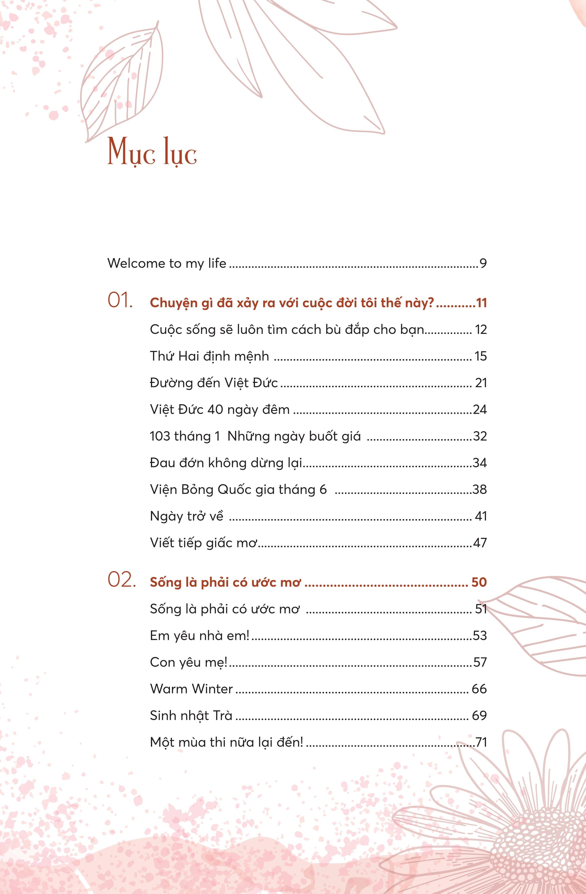 Cuốn sách không chỉ là những trang đượm buồn bởi những thách thức mà Thảo trải qua trong bệnh viện, mà còn là những câu chuyện, những trải nghiệm tuyệt vời cô có được sau khi hồi phục sức khoẻ. Những câu chuyện rất bình dị và rất đỗi đời thường cùng người thân và những bài học cô rút ra sau mỗi trải nghiệm ấy.