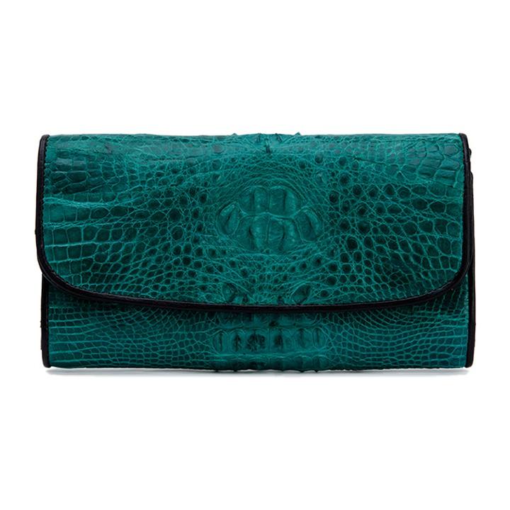 Túi xách nữ da cá sấu và ví cầm tay 3 gấp màu xanh lá của chị Linh đặt may. zalo 0976958076