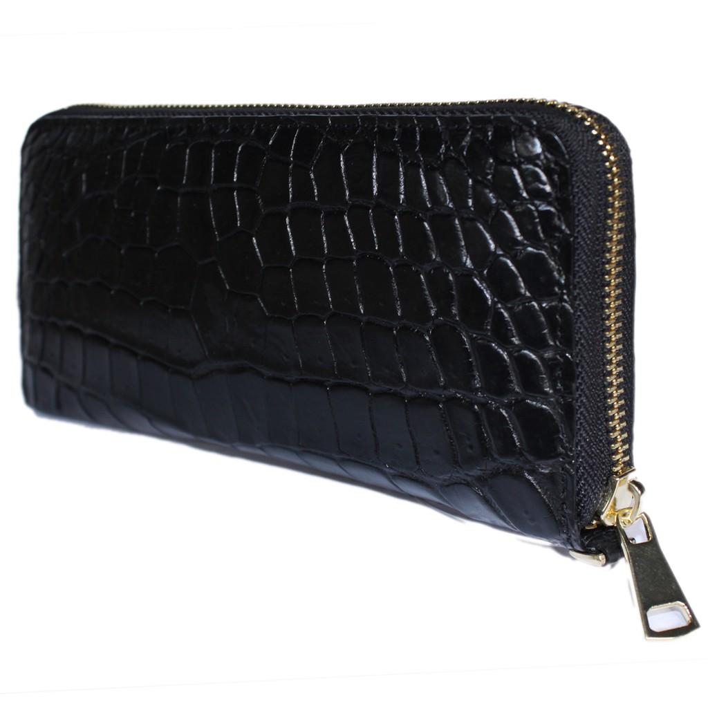 - Tên sản phẩm: HP3742 - Ví nữ da cá sấu Huy Hoàng 1 khóa nguyên con bụng màu đen