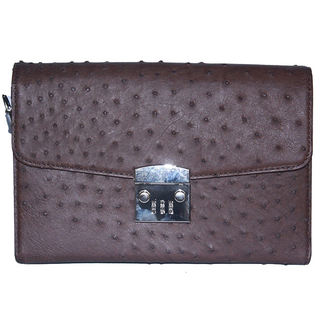 ✨HC6451-52-53-54 - Túi cầm tay nữ Huy Hoàng da đà điểu màu đen, nâu đất, vàng bò, nâu đỏ