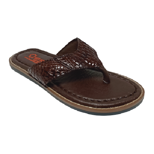 Dép nam Huy hoàng da bò xỏ ngón đan viền màu nâu 7727