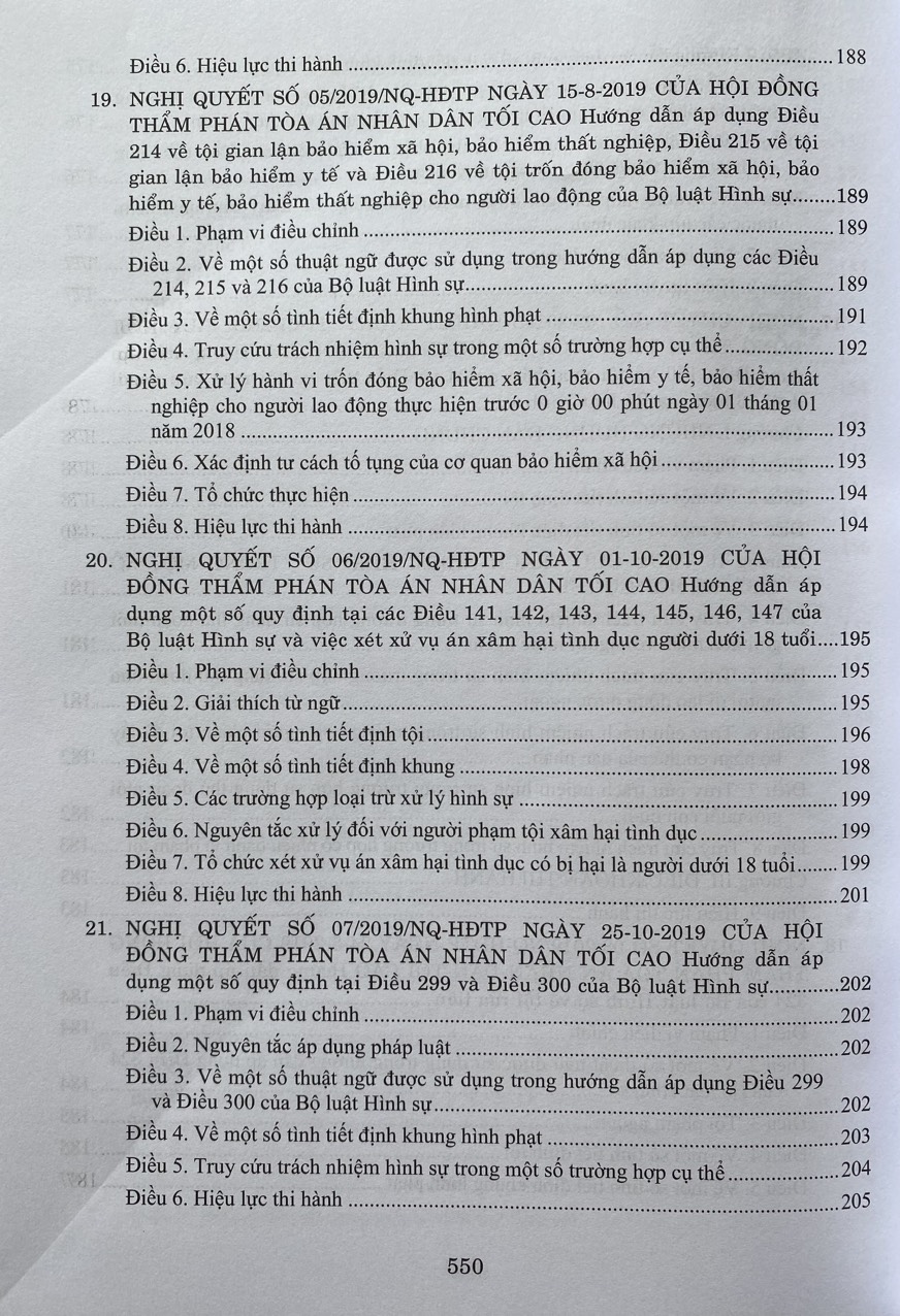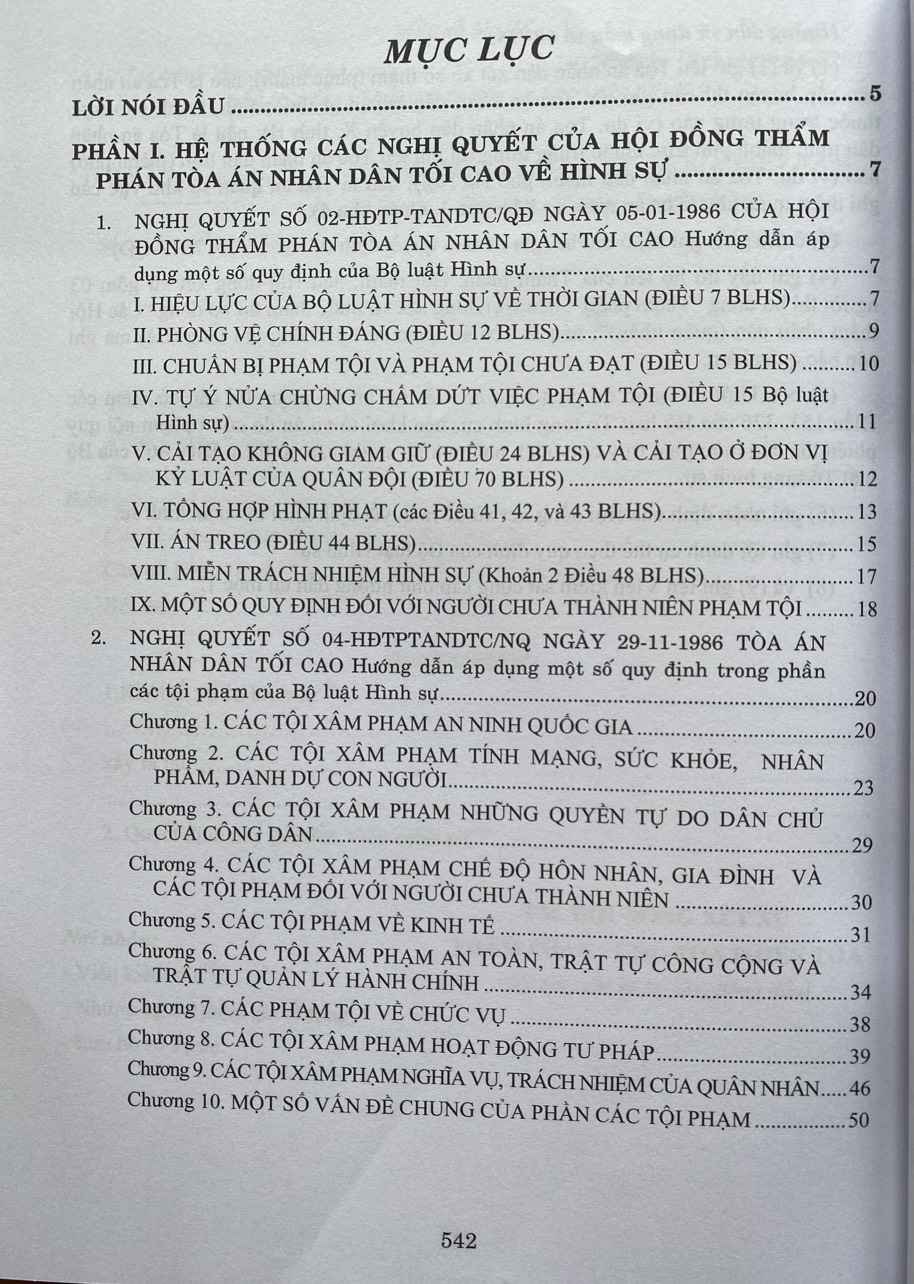 Phần I. Hệ thống các Nghị quyết của Hội đồng Thẩm phán Tòa án nhân dân tối cao về hình sự
